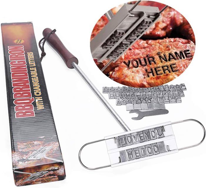 Outil Grillade Nom Personnalisé Fer De Marquage Pour Menuisiers - Fer à Marquer Pour Bois, Cuir, Plastique, Nourriture, Viande Viande Barbecue Dangereux Fer à marquer BBQ 2025 - Cuisine 55 lettres | Fer à Support pour barbecue à gaz avec chariot CAMP4 - Accessoire grill et... * Design convivial : le fer à repasser est facile à utiliser ; il suffit de choisir vos lettres, de les glisser en place, de chauffer le fer sur le gril pendant 5 à 10 minutes, et d'appuyer sur votre viande pour une touche professionnelle. * Poignée résistante à la chaleur : conçu avec une poignée en bois de 41,1 cm de long, cet outil garde vos mains à l'abri de la chaleur, prise en main confortable pendant que vous créez vos chefs-d'œuvre culinaires. Caractéristiques : * Nom de la pièce : fer de marque pour barbecue. Caractéristiques : * Marque personnalisable : doté de 55 lettres et espaces interchangeables, ce fer à repasser vous permet de personnaliser vos viandes grillées avec des noms ou des messages spéciaux, rendant chaque repas unique et mémorable. Contenu de l'emballage : 1 canne à pêche 1 barre de fer en forme de U., 1 base., 1 clé à molette., 55 lettres. Poignée résistante à la chaleur : doté d'une poignée en bois de 5,1 cm de long, ce fer de marque assure une manipulation sûre tout en gardant vos mains confortables lorsque vous créez de délicieux chefs-d'œuvre culinaires. Cadeau attentionné pour les occasions : pour des célébrations comme la fête des mères ou la fête des pères, ce fer à repasser de marque est un cadeau significatif pour les amis et la famille qui aiment griller et se divertir. Fer à marquer Barbecue avec Lettres interchangeables - Accessoires de...