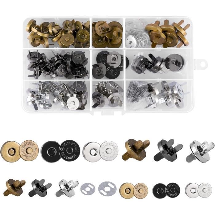 Fermeture de sac à main magnétique 50 ensembles fermoir à bouton... Excellence de l'artisanat : Ces boutons, d'un diamètre de 16 mm, sont minutieusement élaborés pour conférer une touche d'élégance à vos vêtements et sacs, rendant chaque détail unique. Polyvalence d'utilisation : Que ce soit pour le bricolage, la réparation ou la transformation d'anciens objets, ces boutons pression magnétiques sont le choix parfait, donnant à vos projets une allure originale et attrayante. Aimant Couture Fermoir Magnétique Bouton, 30 Pièces Bouton Aimanté, Fermoir Fermoir Sac A Main Choix de couleurs diversifiées : Ce lot renferme une série de 30 boutons pression magnétiques métalliques, avec 6 exemplaires de chaque couleur - bronze antique, noir pistolet, or, blanc argenté et or rose, pour satisfaire tous vos goûts et besoins en matière de couleur. WADORN 6 Couleurs PU Cuir Bouton Pression agnétique pour Sacs à ain... Couleurs : bronze antique, noir pistolet, or, blanc argenté, or rose – 6 de chaque Diamètre : 16 mm Matériau : métal de haute qualité Quantité : 30 boutons au total Utilisation : convient pour décorer les vêtements et les sacs, les loisirs créatifs, etc. 48 Paires Bouton Pression Aimanté, Fermoir Magnetique de 14-18mm