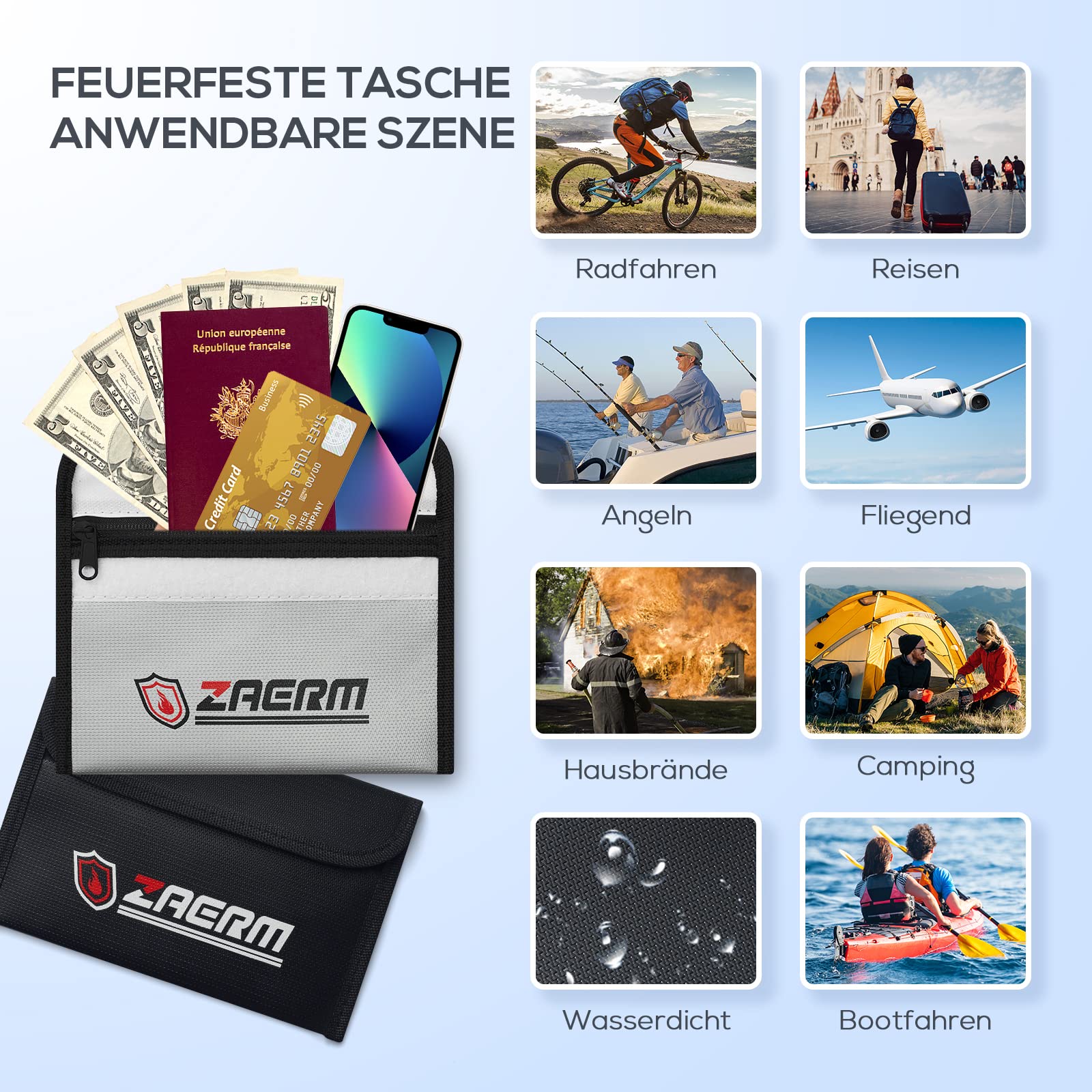 Dimensions : 38 x 28 cm,23x17., 5cm,20x13cm Couleurs disponibles : argenté. Bleu Ignifuge Étanche Sacs D'argent Dossier Maille Poches Documents Boîte De Ran Notre sac ignifuge au design élégant peut non seulement être utilisé pour ranger des objets de valeur, mais peut également être utilisé comme accessoire de mode. Porte-documents étanche Sécurité Sacs Anti Feu,3 Porte-documents Ignifuges | Sac étanche à Feu Pour Sac Sécurité Feu 3 Tailles Température de chaleur : résiste au feu et à la chaleur jusqu'à 1000 degrés. ✔Matériau: Revêtement en silicone anti-démangeaisons + fibre de verre + feuille d'aluminium. Répond à différents besoins : ce lot est disponible en 3 tailles différentes, comprend un sac ignifuge de 37 x 29 cm, un sac enveloppe ignifuge de 25 x 20,5 cm et un petit sac portefeuille ignifuge de 20,5 x 13 cm, grande capacité et polyvalent pour ranger tous vos objets de valeur [Service après-vente Avec un artisanat de haute qualité, c'est une idée de cadeau unique et pratique pour la famille et les amis. ✔Sac ignifuge : 3 couches de protection en fibre de verre de la plus haute qualité pour résister à la chaleur jusqu'à 1000 ℃. Ce sac de sécurité ignifuge est non seulement résistant au feu, mais également très résistant à l'eau au cas où il serait mouillé pour une raison quelconque Compact et pliable, pratique à utiliser, un accessoire pratique pour vous, que ce soit à la maison ou au bureau, portable et peut être facilement plié. Utilisé comme matériau de couche intérieure, le papier d'aluminium a un niveau plus élevé de résistance au feu et à l'eau et une meilleure dissipation thermique. Il peut facilement contenir des documents importants tels que des contrats, des passeports, des témoignages ou même de l'argent. Sac à documents ignifuge DCette pochette résistante au feu est parfaite pour ranger des certificats, titres, passeports, certificats de naissance, détails d'assurance, argent liquide, objets de valeur et photos de valeur - tout ce que vous aimez - en toute sécurité contre les dévastations et les destructions causés par l'incendie. Vous pouvez le faire au travail, au shopping ou en voyage d'affaires