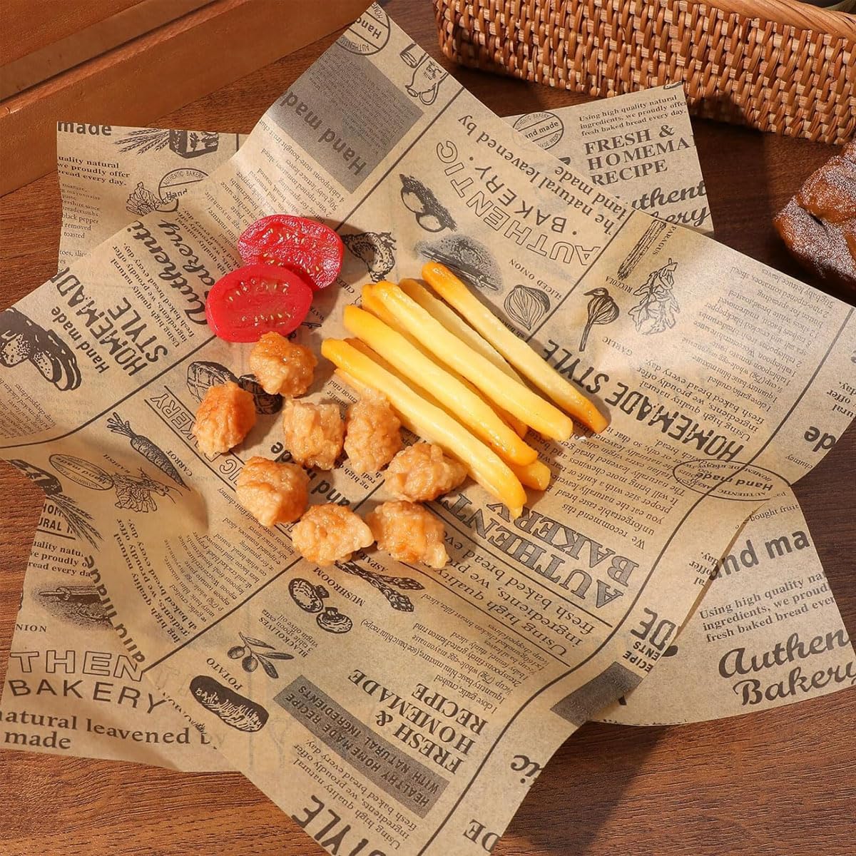 Emballage Snack écologique Papier Alimentaire Anti-Gras 200 Feuilles - 25x25cm | Pour Frites, Hamburgers, Sandwichs Papier Sandwich Jetable Facile à utiliser : le papier sandwich léger et flexible est facile à plier et à façonner, ce qui le rend pratique pour emballer et présenter différents aliments. Emballage Alimentaire écologique Lot De 200 Feuilles De Papier Sulfurisé Résistant à L'huile, Aspect Journal, 30 X 20 Cm, Papier Sulfurisé Pour Pain Au Beurre, Fromage Et Frites Papier Cadeau Alimentaire Design vintage : notre papier sulfurisé est conçu dans un style d'impression classique ancien de journaux, avec du papier kraft marron qui est classique et élégant et rend vos aliments plus délicieux et attrayants, ajoutant une touche d'élégance vintage à votre salle à manger. Notre papier sulfurisé isole efficacement la graisse et l'eau, crée un environnement de cuisson propre, garde le plateau propre, réduit les efforts de nettoyage et vous donne plus de temps pour profiter de votre nourriture Panier En Papier Sulfurisé Pour Airfryer 20x20cm 100 Pièces - Emballer... Convient également pour emballer des cadeaux. Il peut être utilisé directement avec des aliments sans nécessiter de traitement supplémentaire, ce qui garantit une expérience hygiénique et sans problème. Il convient non seulement à un usage domestique, mais aussi aux restaurants occidentaux, aux barbecues, aux restaurants de restauration rapide, aux pâtisseries, etc. Le papier burger est imprimé sur un côté avec de l'encre de soja, qui est sûre et saine et peut être utilisé en toute sécurité en contact direct avec les aliments. Large application : ces feuilles de papier Deli sont parfaites pour emballer des biscuits, des bonbons, des frites, des sandwichs, des gâteaux, des pizzas, du poisson et des chips, etc. Caractéristiques : Nom : feuilles de papier Deli Couleur : marron.