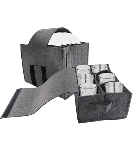 pour les dîners, les vacances, les voyages, les réceptions, les cuisines, les repas en plein air, les buffets, Thanksgiving, les événements de Noël ou comme cadeau pour la pendaison de crémaillère d'un ami. MATÉRIAUX DE HAUTE QUALITÉ: Porte Tasse en Feutre est fabriqué en feutre non tissé de haute qualité, qui est doux et ne raye pas et n'abîme pas les assiettes et autres articles de table. En même temps, le sacs en feutre pour la vaisselle pour camping-car est équipé d'une fermeture Velcro, qui a une forte adhérence et vous pouvez l'ajuster librement Ce porte-gobelets en feutre est très adaptable, qu'il s'agisse d'une assiette creuse ou d'un verre à vin, la fermeture velcro assure toujours un transport en toute sécurité. Porte-assiettes En Feutre, Pour Camping, Vaisselle, 8 Assiettes Accessoires Pour Camping Cars Caravanes Bateaux Et Cuisine 92080743 Spécification: Matériau: tissu non tissé Taille: environ 27 x 22 x 18 cm Couleur: Gris foncé Le paquet contient: 1 x organisateur en feutre pour camping-car Le porte-gobelet en feutre est facile à nettoyer. Lot de 2 porte-assiettes en feutre pour caping-car, porte-gobelets, organiseur de verre, sac de... convient aux dîners, aux vacances, aux voyages, aux divertissements, aux cuisines, aux repas en plein air, aux buffets, à Thanksgiving, aux événements de Noël ou comme cadeau pour la pendaison de crémaillère d'un ami Caractéristiques: sac de rangement pour assiettes est durable, résistant aux déchirures et lavable ; Des coutures extra résistantes et une porte-verre en feutre avec sangles de fermeture réglables assurent une sécurité maximale pour vos couverts. Porte tasse a de bonnes propriétés antidérapantes, ce qui peut empêcher efficacement les assiettes de glisser dans le sac de rangement Rangement Couverts Feutre Porte-assiettes En Feutre Pour Camping-car – Support Pour Verres Pour Camping-car, Armoire De Rangement Tasse Porte-assiettes caping-car boîte de rangeent en feutre - 30,5 x 30,5 x 20,3 c boîte de... LARGE APPLICATION: ce porte-gobelet en feutre pour camping est très adaptable, qu'il s'agisse d'une assiette à soupe ou d'un verre à vin, avec l'aide du, il assure toujours un transport sûr.