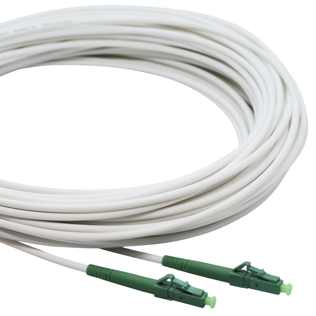 Câble Patch Fibre Optique Modem Fibre Conectra® - Câble Patch En Fibre Optique | OS2 | 9/125 µm Monomode | Simplex | LC/APC Vers LC/APC | Blanc | Idéal Pour Les Réseaux Domestiques FTTH | Câble à Fibre Cable Optique Fibre Fiber Patch Cables Conectra® - Câble patch en fibre optique | OS2 Câble blindé : notre câble à fibre optique armée est équipé de parois en acier flexibles dans la gaine et assure une installation sans interruption même dans... Résistance et fiabilité garanties. Que ce soit dans les locaux d'habitation ou de travail, les magasins ou les ateliers, ce câble résiste aux rongeurs et offre une sécurité maximale. Débit de données maximal et longueur parfaite : transférez des données jusqu'à 100 Gbit/s. Fibre de verre pour la maison : notre câble patch compatible FTTH améliore votre infrastructure de fibre optique domestique en un clin d'œil. Avec des longueurs allant de 3 m à 100 m, il existe le câble adapté à presque toutes les applications. Le rayon de courbure minimum de 7,5 mm permet une pose flexible, même dans des espaces restreints. Robuste et sûr : le fil d'aramide à l'intérieur assure un excellent soulagement de la traction. Permet le raccordement d'un commutateur/un routeur/une box Internet avec prise à fibre optique · à recommande pour l'internet à haut débit...