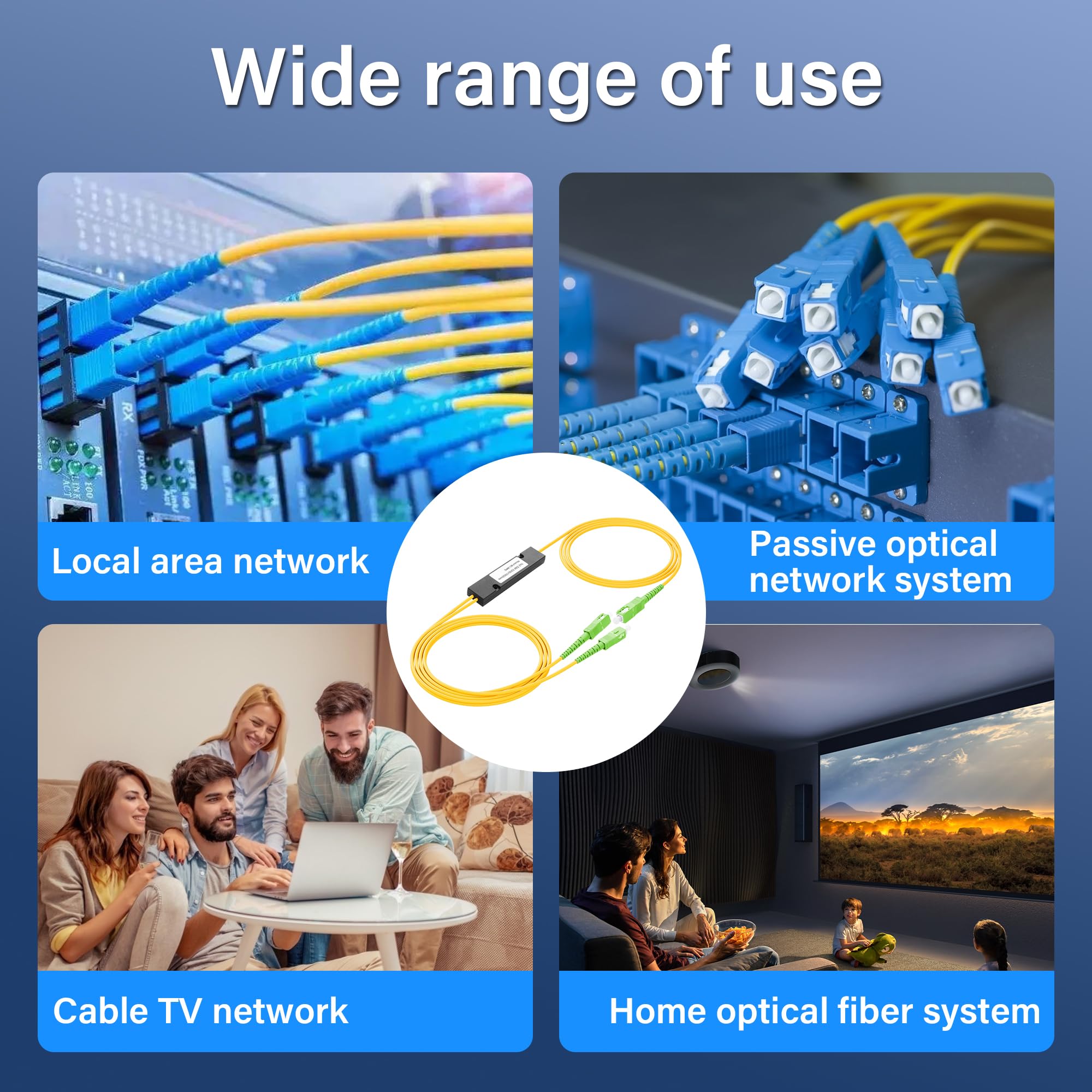 BB02994-Splitter optique SC APC 1X2 PLC séparateur optique à SC/APC Fibre Optique Splitter] : Le séparateur de fibre optique monomode SC APC 1X2 est utilisé pour distribuer la lumière à deux endroits pour le traitement. PNGKNYOCN Splitter à fibre optique SC APC,Splitter à fibre... Connecteur Céramique Haute Précision PNGKNYOCN Répartiteur De Fibre Optique SC APC, SC/APC 1 X 2 Séparateur Fibre Optique SC APC 1., Nom du produit : Séparateur de fibre monomode SC., 2., longueur du câble : 1 mètre pour le câble gauche, 1 mètre pour le câble droit., 3., spécification du produit : Longueur d'onde : 1310 nm et 1550 nm. Améliorer la vitesse et la flexibilité de la propagation du signal optique., 5., Le couvercle anti-poussière du connecteur peut protéger le connecteur de fibre optique de la pollution environnementale externe et des dommages externes, afin d'éviter un ralentissement important du réseau ou une défaillance du réseau., 6., le câble à fibre optique SC/APC à SC/APC est compatible avec tous les équipements et connecteurs à fibre optique standard, largement utilisé dans les salles de télécommunication et la connexion entre le terminal optique et la boîte à bornes, stable et à grande vitesse., 7., quantité de l'emballage : 1xSC/APC 1X2 Fibre Optique Splitters SC / UPC à SC / UPC atténuateur de fibre optique monomode, 3dB... Perte d'insertion : ≤ 0,3dB ; perte de retour : ≥ 50dBT. Bouchon de fibre optique de haute qualité, anti-détachement, pas facile à déformer, virole en céramique de haute précision, facile à dissoudre, faible perte optique, performance stable et fiable. 【Widely used】 : Les cordons de raccordement en fibre optique SC sont compatibles avec tous les dispositifs et connecteurs en fibre optique standard pour Gigabit Ethernet, Fibre Channel, les réseaux locaux, les centres de données, les installations de bâtiments, les applications commerciales et autres applications à haute densité. 【Compact design】:Le répartiteur de fibre optique est léger, n'a pas besoin d'occuper un grand espace d'installation, peut être directement installé dans les différents boîtiers de commutation existants, pratique, rapide et pratique.