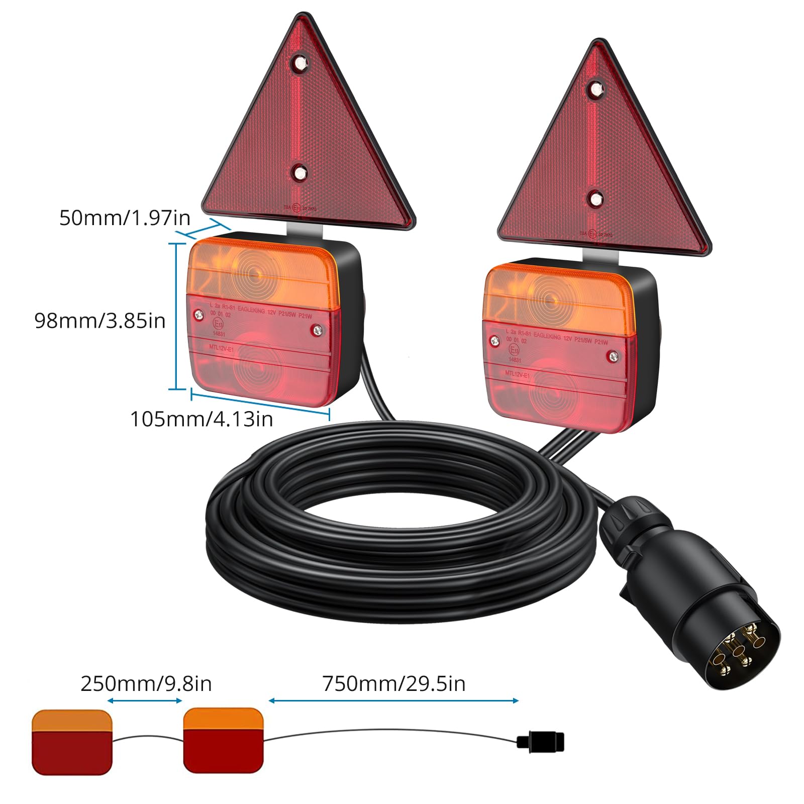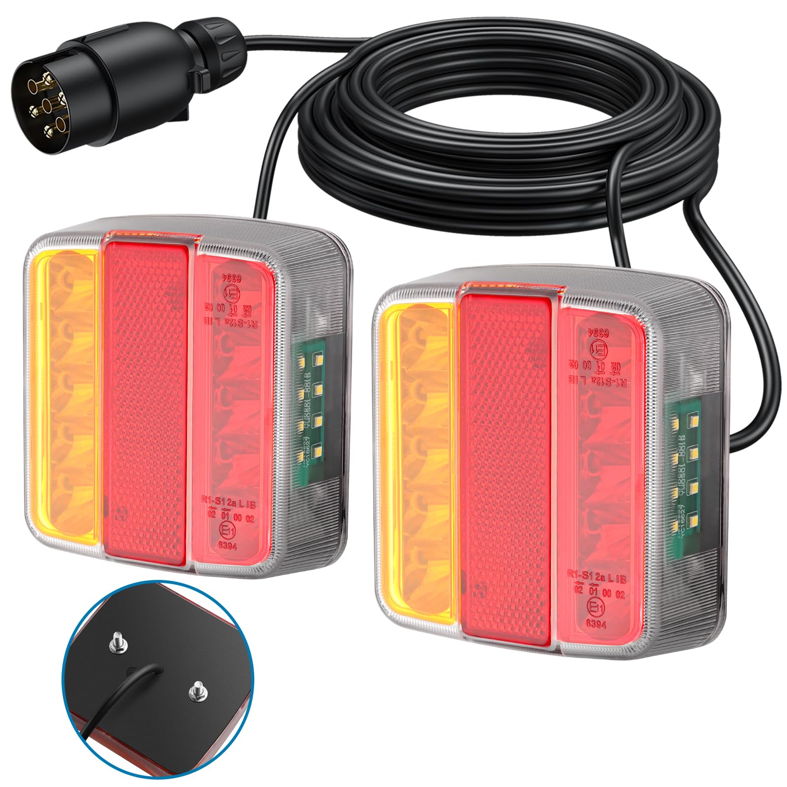Kit De Feux Arrière Pour Remorque, éclairage De Remorque 13 Broches 12 V Feux Arriere Avec 7 Fonctions 2 Cables De 55 M Homologue Ce Pour Voitures Camions Bateaux Caravanes Et Fourgons 90721387 Kit éclairage Remorque Magnétique IP65 E11 WilTec Feux Arrière De Remorque - Fiche 7 Broches, Câble 7,5 M & 2,5 M - Support Kit éclairage Remorque Universel Feu arrière de remorque - ULISEM - Fiche 7 broches - Câbles 7,5 m et 2,5 m - Support magnétique. En 1 fois. 34,99 €. Prix de comparaison Prise à 7 broches et installation rapide : avec connecteurs européens, directement dans la prise à 7 broches de la remorque, aucun câblage nécessaire ; vous pouvez fixer les feux arrière individuellement et rapidement grâce aux pieds magnétiques Feux arrière LED – avec Aimant et Fiche à 7 Broches – 12 V, E11... Convient pour remorque, camping-car, camion, voiture, tracteur, etc Nombreuses utilisations : le kit complet de feux arrière sert de feu clignotant, de feu de frein, de feu arrière, de feu arrière.