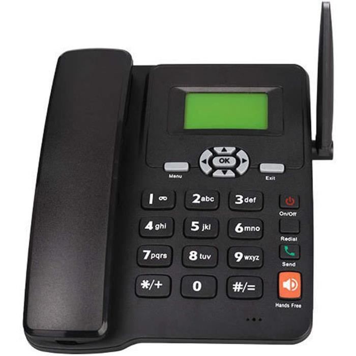 Téléphone sans fil Prise en charge téléphonique GSM 850/900 L'erreur de mesure permis est de +/- 1-3 cm. Téléphone Bureau Antenne Externe Téléphone Sans Fil Support Téléphonique De Bureau GSM 850-900-1800 - 1900MHZ Double Carte SIM 2G Téléphone Fixe Sans Fil 2G Note: réflexion de lumière et différents écrans peuvent causer la couleur de l'article dans un peu différente de la vraie chose. Téléphone multifonctionnel - Ce n'est pas seulement un outil pour appeler, mais aussi un réveil et une fonction radio FM. Idéal pour les personnes âgées - Avec un gros bouton et la police est claire et adaptée aux personnes âgées Téléphone Mini - QIILU - Modèle Débloqué - Double Carte SIM - 2G GSM - Lecteur de Musique BT... Un téléphone apporte plus de fonctions. Téléphone multifonction - Il peut composer rapidement un numéro, enregistrer 50 groupes d'enregistrements d'appels pour votre confort et d'autres fonctions courantes. 7 niveaux de réglage de la luminosité - En fonction de la lumière , vous pouvez régler la luminosité de la police d'affichage pour garantir un affichage clair du contenu. Type : -6588Fréquence GSM : 850/900/1800/1900MHZBatterie : batterie Li-ion 3,7 V 1000 mAhFonction de rétroéclairage LCD: prise en chargeTension : AC220VType de prise : prise UE, applicable à l'Indonésie, l'Allemagne, la France, l'Espagne, l'Italie, etc. En plus des fonctions habituelles, il existe des fonctions radio et réveil. Tebbomp Antenne externe - L'antenne externe rend la réception du signal plus stable, élimine les problèmes de déconnexion, garantit une qualité sonore et sans entrave à chaque appel.
