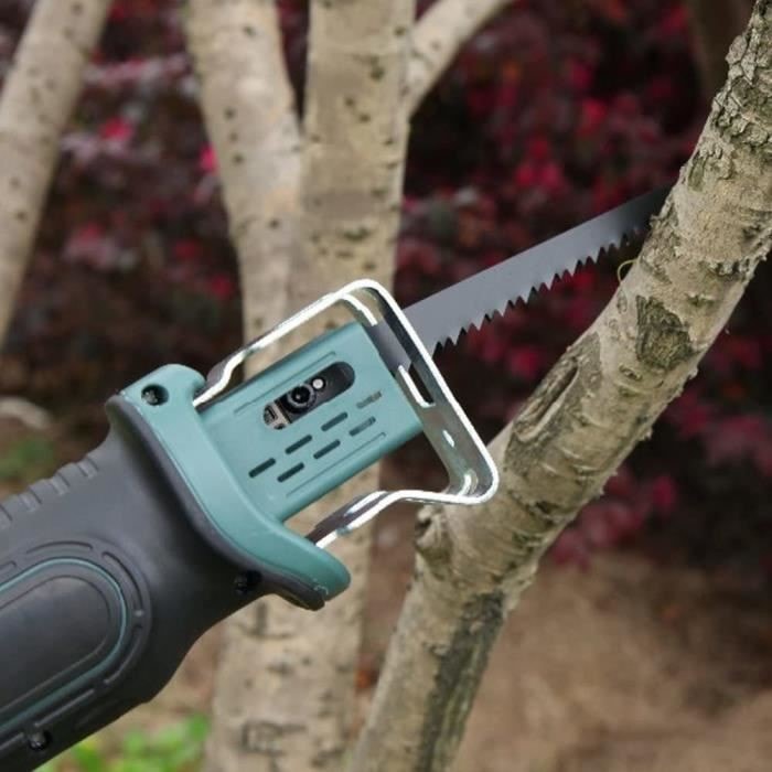 Batterie 10.8V Autonome Scie Sabre FISHTEC Sans Fil - Télescopique 170 Cm Scie Sabre Sans Fil Scie sabre sans fil 36V 6A | JET MASTER germagny Peigne Tondeuse FISHTEC - Électrique Sans Fil - 4 Hauteurs Ajustables... La stabilité et la rapidité de coupe sont assurées par son support de fixation innovant. Que ce soit pour des travaux de précision ou des coupes rapides, cette scie est un outil indispensable. 🪵 - 3 LAMES FOURNIES - Pour maximiser son efficacité, trois lames sont fournies: une pour le bois, une pour les métaux et une pour l'aluminium. 🪵 - SCIE SABRE SANS FIL - Découvrez enfin une scie alliant polyvalence, puissance et robustesse! La scie est fabriquée en ABS, aluminium et acier 65 Mn, garantissant ainsi une durabilité et une performance exceptionnelles. Peu importe le matériau, cette scie est prête à relever tous les défis., 🪵 - BATTERIE 10., 8V - Sa batterie Lithium-ion de 1300mAh offre une puissance de 10., 8V, permettant une autonomie de 20 à 30 minutes après un temps de charge de seulement 3 heures. Le manche télescopique, qui peut s'étendre jusqu'à 170 cm, assure une utilisation confortable et ergonomique. SOLIDE – La scie sabre sans fil est idéal pour vos travaux de coupe compliqués. Sa polyvalence, puissance et robustesse, vous permettrons de venir à bout de matériaux en bois (élagage) et métaux