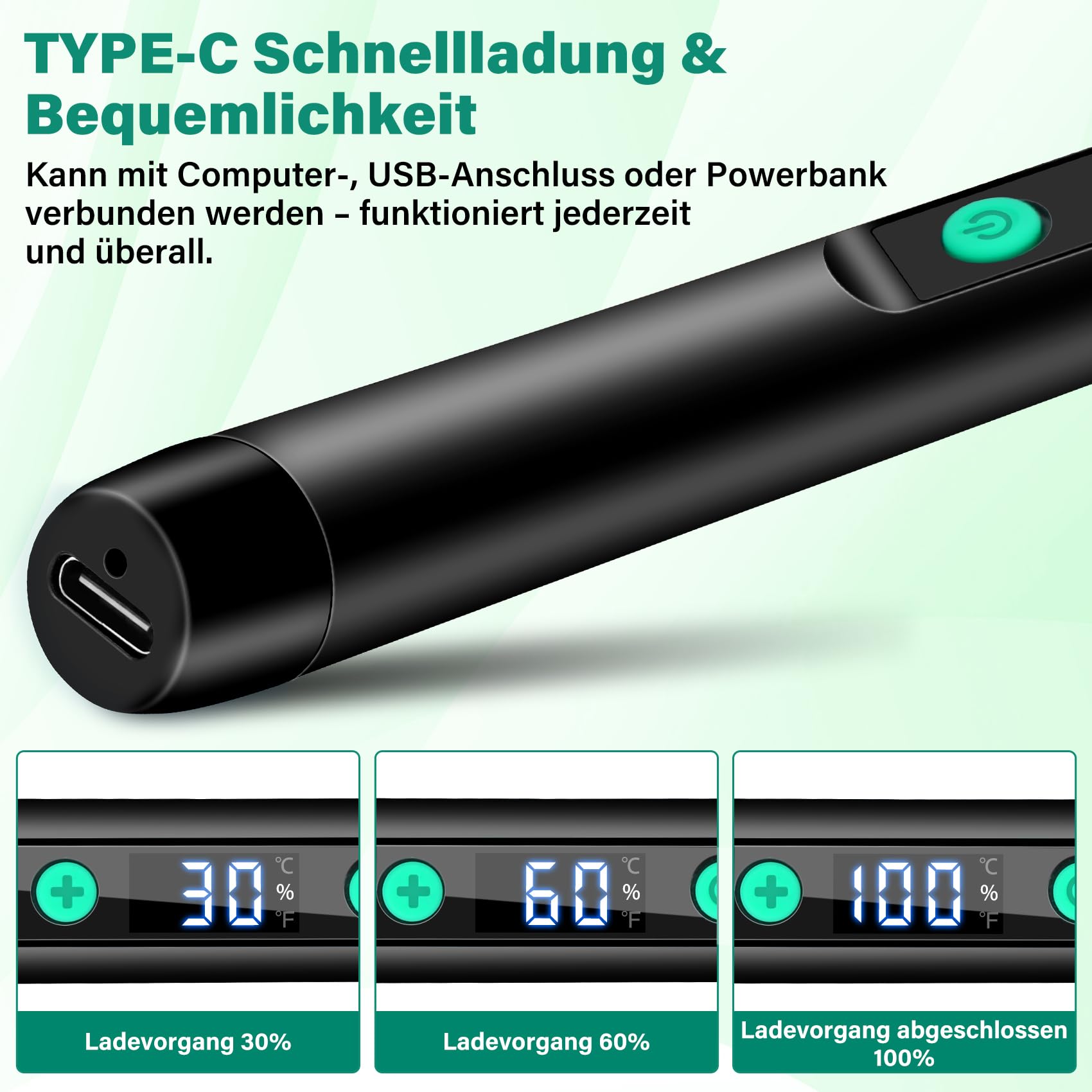 * Utilisation conviviale : dispose d'un simple bouton d'alimentation qui permet une fonctionnalité marche/arrêt facile et des réglages rapides de la température, ce qui le rend accessible pour les utilisateurs de tous niveaux de compétence. 5V 15W Alimenté par Pile Fer à Souder avec Chargement USB Fer à Souder Colis 5 : 1 pointe de fer à souder (dédiée 5133-C) E. Fer à Souder Sécurité Arrêt Automatique Kit De Fer à Souder Sans Fil USB-C, Chauffe En 8 Secondes Chauffe Rapide 8 Secondes * Conseils interchangeables : le kit est livré avec trois pointes de soudure différentes, vous offrant la flexibilité de choisir le bon outil pour diverses tâches, améliorant votre efficacité et votre précision. Caractéristiques : * Nom du produit : kit de fer à souder sans fil. Description de Kit de fer à souder sans fil - Outil de réparation de soudage USB Français : Chauffe rapidement : Ce fer à souder adopte un noyau à haute puissance, qui chauffe jusqu'à la température de fonctionnement en 8 à 12 secondes, et sa puissance de chauffage maintient une température constante La sécurité avant tout : dispose d'une fonction d'arrêt automatique après 30 secondes d'inactivité, donnant la priorité à votre sécurité et à votre surchauffe. Colis 2 : 1 kit de fer à souder sans fil (1 fer à souder, 3 embouts interchangeables, fil à souder, un câble de charge USB et un support éponge) B Colis 3 : 1 pointe de fer à souder (dédiée 5133-B) C. Kit de soudage sans fil USB : Ce kit de soudage sans fil est équipé d'une batterie lithium-ion rechargeable intégrée, éliminant ainsi le besoin d'un câble d'alimentation et permettant un soudage facile et flexible, où que vous soyez Contenu de l'emballage : Colis 1 : 1 kit de fer à souder sans fil (1 fer à souder, 1 embout interchangeable, fil à souder, un câble de charge USB et un support éponge). Matériau : métal/poignée en caoutchouc., *Taille : non. Colis 4 : 1 pointe de fer à souder (dédiée 5133-K) D. * Options de charge polyvalentes : le port USB-C intégré permet de charger à partir de plusieurs sources, y compris les prises murales, les ordinateurs portables, les banques d'alimentation et les chargeurs de voiture, vous pouvez l'alimenter pendant l'utilisation. Temps de chauffage rapide : chauffe en seulement 8 secondes, vous permettant de vous attaquer rapidement aux projets de bricolage et aux réparations sans délai.