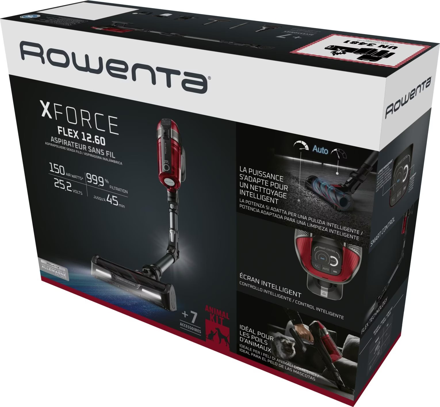 Aspirateur Animal Care Promo Aspirateur Balai Sans Fil X-force Flex Rowenta Chez Intermarché Aspirateur Balai Rowenta X Force Rowenta X-Force Flex 14.60 Animal Care Aspirateur balai sans fil 32,4 V... Aspirateur balai sans fil ROWENTA RH9471WO Airforce flex 360 Nettoyage intelligent avec réglage automatique de la puissance d'aspiration au type de sol pour un nettoyage optimal, à chaque fois X-Force Flex 12.60, Aspirateur balai sans fil, 150AW, 45 min, Animal... Aspirateur sans fil avec brosse turbo spéciale pour poils d'animaux pour répondre aux besoins des propriétaires d'animaux *en cas d'utilisation du mode boost **lors de l'utilisation de l'aspirateur à main en mode Eco puissant***par rapport à un appareil non flexible Puissance d'aspiration puissante et nettoyante en profondeur jusqu'à 150 Airwatts, batterie longue durée avec jusqu'à 45 minutes d'autonomie et 99,9 % de filtration La puissance d'aspiration maximale jusqu'à 150 Air Watt* assure un nettoyage efficace à chaque fois et la batterie amovible offre une autonomie impressionnante de 45 minutes**.