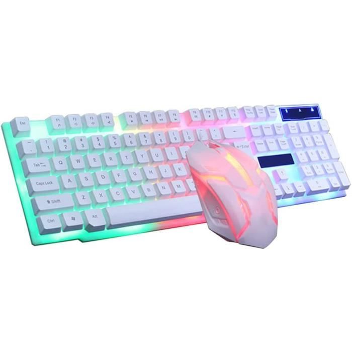 Combo Bureau Gaming Combo Clavier Et Souris De Jeu Filaire, Avec Clavier De Jeu Rétroéclairé RVB 61 Touches, Tapis De Souris, Souris De Jeu 7 Couleurs, 3600 DPI, Couleur Combo Clavier 115 Touches Rétroéclairage Rgb Clavier et souris sans fil Bluetooth rétroéclairés, ensemble Mini clavier fil Combo souris clavier Kit de Souris de Clavier Fil 2.4G avec informatique d... Détro-éclairage RVB adaptatif: équipé d'un rétro-éclairage RVB multi-mode réglable, cette fonctionnalité garantit une reconnaissance de clé précise dans des environnements à faible luminosité, améliorant les expériences de jeu et de fin de nuit tout en offrant une augmentation de la précision et de l'attrait visuel. Cette conception permet le multitâche, comme la saisie lors des spectacles en streaming ou assister à des conférences vidéo, augmentant la productivité globale. Fonctionnalité améliorée de la souris: la disposition de la souris à 6 boutons, y compris vers l'avant / vers l'arrière et une touche DPI, rationalise la navigation Web et dossier. Disposition complète des touches: le clavier sans fil propose 115 touches, y compris un clavier numérique dédié et 6 touches de contrôle multimédia. Avec un ajustements DPI tactiles de 800/1200/1600, il convient aux tâches allant de l'édition de documents à la conception multi-écran. Longue durée de vie de la batterie: avec un clavier de 1000mAh et une batterie LI de souris 500mAh, ce combo offre un mode de sommeil intelligent pour une utilisation prolongée. La charge rapide de type C soutient l'utilisation lors de la charge, éliminant l'anxiété de la pénurie de courant. Combo clavier et souris sans fil, clavier sans fil rose, 2,4 en France | Clasf informatique