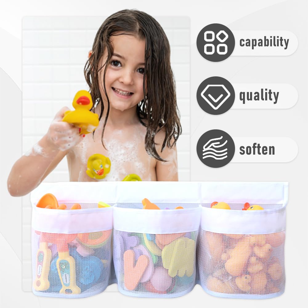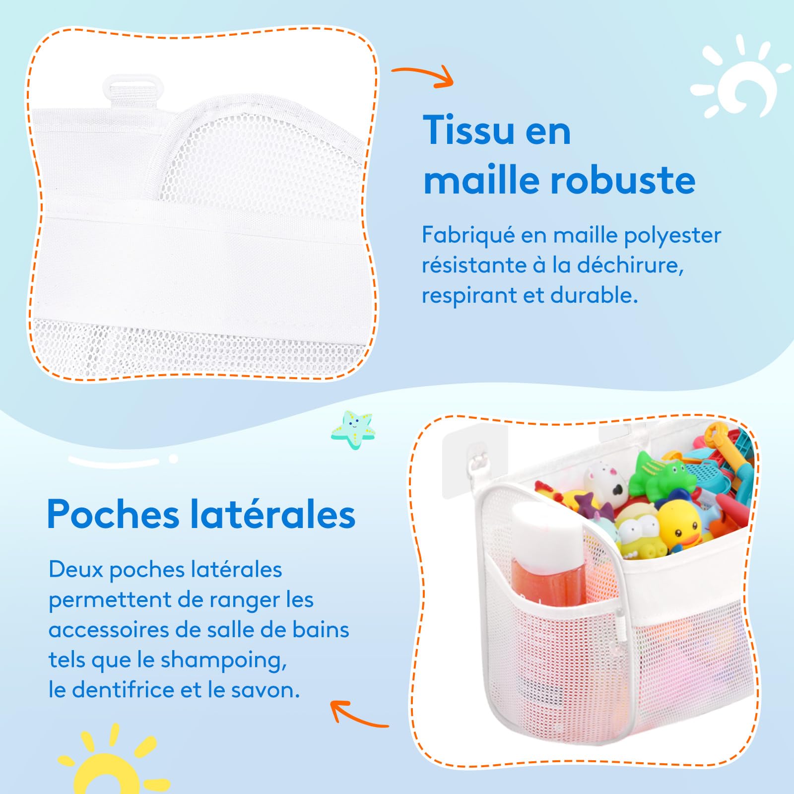 Grâce à ses 3 compartiments, Sacs de rangement pour salle de bain chaque enfant peut avoir son propre espace dédié. Il comprend un compartiment principal pour les jouets de bain et deux poches latérales pour le shampoing, le dentifrice et le savon. Ce sac de rangement pour jouets de bain est fabriqué en tissu Oxford, empêchant efficacement la vapeur d'eau de pénétrer, rangement jouet bain prolongeant ainsi la durée de vie des articles. Il est idéal pour ranger les jouets de bébé et d'enfant dans la salle de bain. Le tissu en maille est lavable en machine pour un entretien facile et sans laisser de résidus. Sa maille fine se nettoie facilement à l'eau chaude ou à haute pression. Rangement Jouets Anti-humidité Filet Rangement Jouet Bain,Filet Jouet Bain Bebe Avec 3 Compartiments,Sac De Rangement Pour Jouets De Bain,Organisateur De Jouets De Salle De Bain Avec 4 Crochets,Sac En Maille Pour Jouet Baignoire Organiseur Salle De Bain Bébé Rangement pour jouets de bain - Munchkin - High'n Dry - Gris - Tissu en Ce filet de rangement pour jouets de bain pour bébé est doté d'une large ouverture pour un accès et un rangement faciles. Notre sac de rangement pour jouets de bain est fabriqué en maille indéchirable et en tissu Oxford, ce qui le rend durable, rangement jouet baignoire indéchirable et incassable. Matériaux De Haute Qualité : Notre sac de rangement pour jouets de bain est fabriqué en maille indéchirable et en tissu Oxford, filet de bain jouet ce qui le rend durable, rangement jouet baignoire indéchirable et incassable. Filet De Rangement Salle De Bain Jouet De Stockage Sac À Jouet Du Bain... Il ne jaunit pas, même en cas d'utilisation prolongée. Large OPuverture : Ce filet de rangement pour jouets de bain pour bébé est doté d'une large ouverture pour un accès et un rangement faciles. Le sac de rangement pour jouets de bain utilise une technologie de couture de pointe pour garantir sa durabilité et éviter les problèmes tels que les fils qui se détachent après une utilisation prolongée Filet de rangement jouets de bain Ours polaire - 3 sprouts Il rangement jouet de bain peut contenir en toute sécurité les jouets de bain des bébés de 6 à 12 mois ou des enfants de 1 à 3 ans, jusqu'à 10 kg. Facile à Nettoyer : Sa maille fine se nettoie facilement à l'eau chaude ou à haute pression. Il peut contenir en toute sécurité les jouets de bain des bébés de 6 à 12 mois ou des enfants de 1 à 3 ans, jusqu'à 10 kg.