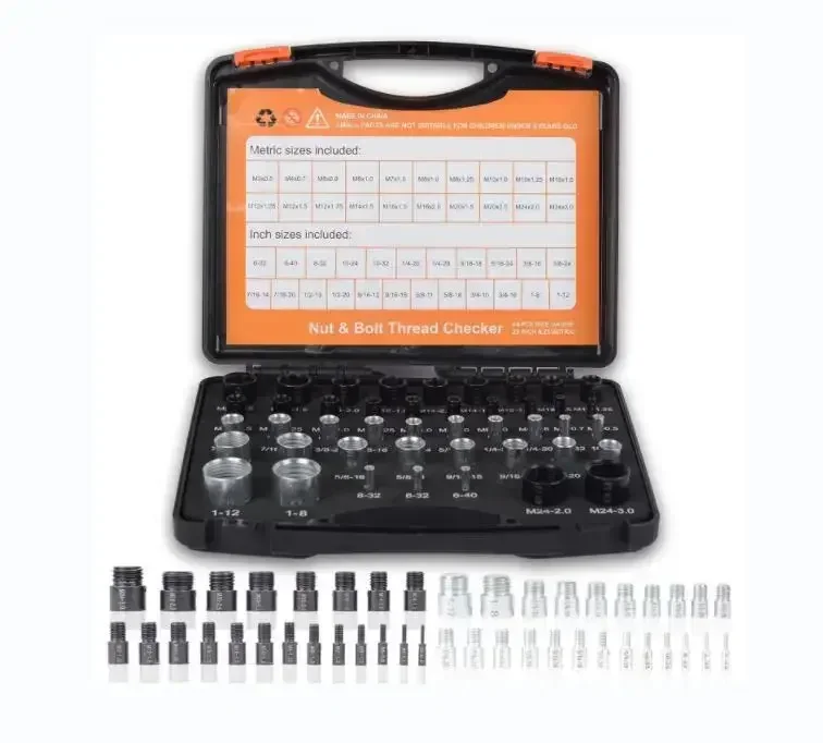 Testeur de filetage portable pour boulons, écrous, vis on OnBuy Outil Identification Filetage Testeur De Filetage Pour Vis Et écrous Pouces Et Métrique 26 Annonces Males Femelles 14 Pouces Et 12 Metriques Jeu 50 Gabarits Filetage Retrouvez des jauges de précision pour mesurer des épaisseurs avec exactitude, des jauges de filetage pour vérifier les dimensions des filetages, ainsi que des calibres de soudeur spécialement conçus pour contrôler la qualité des soudures Classification précise des filetages : le testeur de filetage pour écrous vous facilite l'identification rapide et précise des vis et des écrous grâce à une utilisation facile. JAUGE DE FILETAGE multi tailles pour écrous et boulons comprend 14... Utilisation polyvalente : le testeur de filetage est compatible avec les tailles standard SAE et métriques, ce qui en fait un outil indispensable pour les mécaniciens et les amateurs. Facile à utiliser : il suffit de visser l'écrou ou la vis dans la jauge de filetage et la vérification des dimensions se fait en quelques secondes.