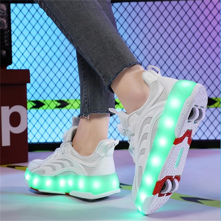 Pour vous assurer que vos pieds sont à l'aise, veuillez mesurer la longueur de vos pieds et vous référer au tableau des tailles pour choisir la bonne taille. Chaussure A Roulette Chaussures à Roulettes 2 En 1 Mateju - Patins Rétractables Enfants/Adultes 29-40 EU | Skate Et Marche Skate Shoes 2 En 1Hey les fans de glisse ! Ces chaussures à roulettes Mateju sont trop cool - un vrai jeu 2 en 1 ! En mode normal, ce sont des baskets confortables avec semelle en caoutchouc antidérapante. Mais quand l'envie de glisser vous prend, hop ! Vous tournez l... INNOVANTE DE CHAUSSURES À ROULETTES! Type : patins à roulettes/baskets/chaussures de sport Roue rétractable créative: La roue avant est amovible et la roue arrière peut être rétractée. Patins à Roulettes Enfants Amovibles Garçons Filles Mateju Chaussures à Roulettes Pour Fille Et Garçon Avec 2 Roues Chaussure à Roulette Fille Bon équilibre, facile à contrôler, centre de gravité, sûr à utiliser. Elles sont la combinaison parfaite entre les loisirs et le sport. Si vous voulez glisser, Ouvrez la base et installez les poulies pour passer facilement des chaussures de parkour aux patins. (Les débutants doivent utiliser les patins à roulettes sous la surveillance d'un adulte et porter un équipement de protection., ) CADEAU PARFAIT POUR LES ENFANTS: Ces chaussures à roulettes sont cool et élégantes, adaptées aux sports de plein air, faciles à apprendre et à glisser,pour les adultes, les enfants, les garçons, les filles, les jeunes /patineurs/fêtes/disco/anniversaire/Noël. L'assemblage de chaussures est simple et amusant et peut entraîner efficacement les capacités pratiques des enfants. Pour des raisons de sécurité, les enfants doivent être accompagnés d'un adulte lorsqu'ils portent ces chaussures. Le système 2 en 1 permet de passer de chaussures de sport normales à patins à roulettes en quelques secondes. La roue arrière est rétractable (bouton invisible) et les roues avant sont amovibles avec l'outil fourni Ces chaussures sont faciles à apprendre et un excellent cadeau pour les enfants. Si vous préférez porter des chaussures amples, il est également recommandé de choisir une taille plus grande. Chaussures à Roulettes Mateju 2 En 1 - Patins Rétractables