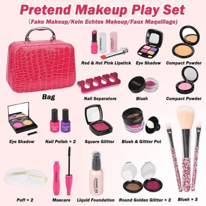 Meilleur Maquillage Pour Enfant Kit De Maquillage Pour Enfants Frankie Stein Maquillage Enfant 3 Ans 🎀 Stimule la créativité et l’imagination:Notre maquillage enfant jouet fille offre un aspect et une texture réalistes, sans aucun risque lié au maquillage réel. Maquillage Enfant Fille Aomig Maquillage Enfant Jouet Filles, Kit De Coffret Maquillage Enfant Pas de risque de salissure ou d’irritation cutanée, votre enfant peut profiter du jeu en toute sécurité. Comparez les prix pour Coffret maquillage enfant. Affichez les offres et comparez les marchands avec leDénicheur Maquillage Enfant Jouet Fille 36pcs Jouet de Maquillage Lavable et Non... 🎀 Expérience complète de maquillage:Le faux maquillage enfant jouet contient de nombreux accessoires et couvre presque tous les aspects du maquillage. Chaque fille rêve d’avoir sa propre trousse de maquillage et vivra un plaisir infini en jouant. Les filles peuvent créer librement leur style, apprendre à assortir les couleurs et les tenues et profiter de leur moment de princesse. 🎀 Matériaux sûrs:Conçu spécialement pour les filles de 3 à 5 ans, ce produit ne contient aucun véritable cosmétique, produit chimique, poudre ou liquide. 🎀 Favorise l’interaction parent-enfant:Les jeux de maquillage permettent non seulement de s’amuser seul, mais créent aussi de précieux moments en famille. Description du produit 1., Le jouet maquillage enfant contient de nombreux accessoires et couvre presque tous les aspects du maquillage., 2., Notre jouet fille faux maquillage offre un aspect et une texture réalistes, sans aucun risque lié au maquillage réel., 3., Chaque fille rêve d’avoir sa propre trousse de maquillage et vivra un plaisir infini en jouant.
