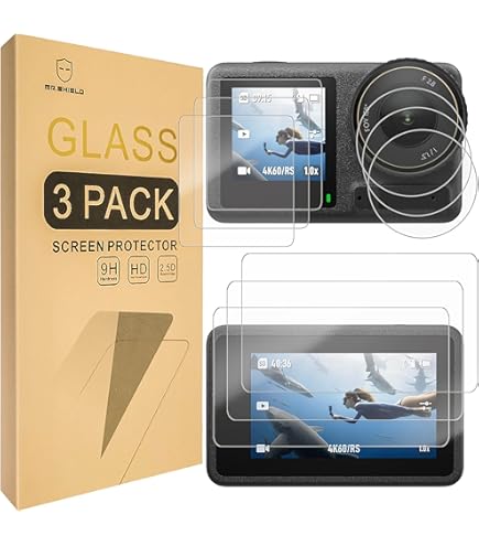 Protection Anti-rayures Haute Clarté Amazear Lot De 2 Films Protecteurs D'écran En Verre Trempé Avec Capuchon D'objectif Pour Appareil Photo DJI Osmo Action 5 Pro - Résistant Aux Rayures - Sans Bulles Accessoire DJI Osmo 360 Anti-traces ULBTER Protection d'écran pour appareil photo DJI Osmo Action 5 Pro + capuchon d'objectif [2 + 6 pièces], 0,3 mm, dureté 9H, protection en verre trempé, anti-rayures, anti-bulles Bouclier diamant 9H et résiste aux clés, aux pierres et aux chutes – Testé en laboratoire pour résister aux rayures (3 fois plus résistant que le verre ordinaire). Capturez des panoramas réalistes – pas de brume, pas d'effet de filtre, juste ce que votre œil voit Protégez efficacement l’écran de votre DJI Osmo 360 Conçu sur mesure pour le DJI Osmo 360 Verre trempé 9H : excellente résistance aux rayures, chocs et traces Ultra fin et réactif : n'altère pas la sensibilité tactile Protection complète contre l’eau, la poussière, l’huile et les empreintes Installation facile grâce à une... Revêtement oléophobe qui fait rire les traces de doigts et les gouttes de pluie Pas d'obstruction de l'objectif, pas de frustration d'alignement – juste une prise de vue panoramique cristalline 99 % de clarté HD comme le viseur : le verre optique de qualité militaire élimine la distorsion des couleurs. Conçu avec précision pour DJI Osmo 360 – Découpe au laser à une précision de 0,1 mm pour une couverture transparente bord à bord.