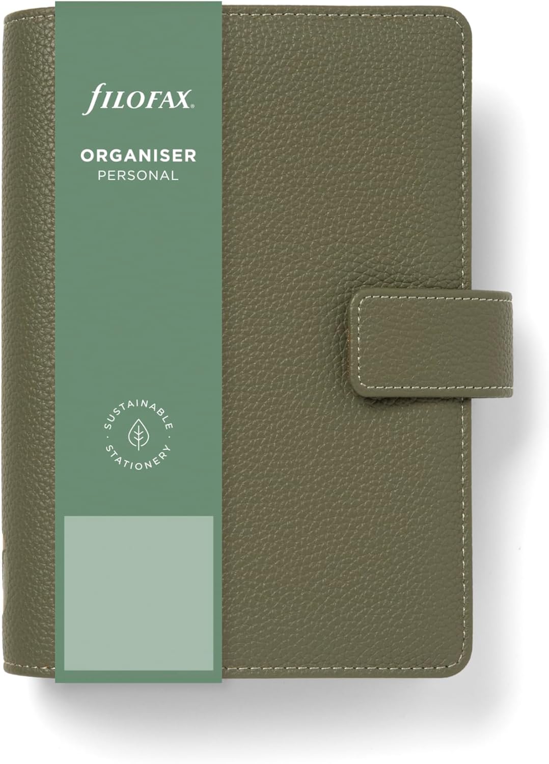 Garden Dusk Filofax Camden A5 Organiser Olive 2026 Planner Anneaux Mit 100 % recyceltem füllerfreundlichen Papier zeigt diese Kollektion eine stilvolle und bewusste Entscheidung. Mit dem innovativen Merkmal der entnehmbaren Ringe in Charcoal ist der Camden Organiser in den Farben Schwarz, Olive und Mocha erhältlich und definiert Flexibilität und Funktionalität neu, so dass individuelle Planung einfacher wird denn je., Camden. Hergestellt aus veganem genarbten Leder, das zu 100 % aus recyceltem Kunststoff besteht.