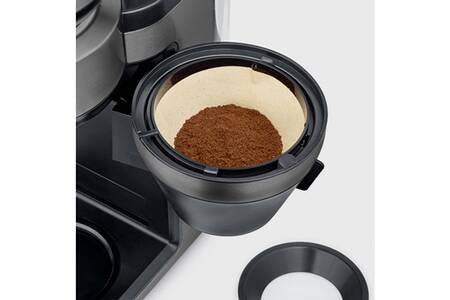 KA 4852 SEVERIN 4810 Cafetire Filtre Avec Broyeur Intgr - Noir Et Inox - 1000W Filtre Permanent Goldton Le distributeur de poudre s'ouvre lui aussi automatiquement et se nettoie donc facilement., Filtre à eau inclus !, </P> Filka de Severin, la cafetière filtre à broyeur intégré qui passe du... Notre FILKA unique en son genre convient pour les pichets, les tasses et les gobelets et allie le confort d’une machine entièrement automatique au plaisir d’un café filtre classique. FILKA prélève toujours exactement la quantité d'eau nécessaire pour la quantité de café souhaitée., </P> FILKA sait tout faire grâce à sa compatibilité innovante 5 en 1 et à son repose-tasses personnalisable : verseuse en verre (incluse), verseuse isotherme, petite tasse, grande tasse ou tasse isotherme To go. Il suffit désormais d’appuyer sur un bouton pour obtenir du café filtre fraîchement moulu dans la quantité souhaitée. Quantité de café réglable de manière entièrement automatique (100 - 350 ml) lors du prélèvement de la tasse., </P> <P>Le plaisir d'un café de qualité supérieure - filtre durable Goldton inclus. Le réservoir d'eau amovible permet un remplissage confortable et le réservoir à grains amovible permet de nettoyer le moulin en toute simplicité. Cafetière filtre entièrement automatique FILKA