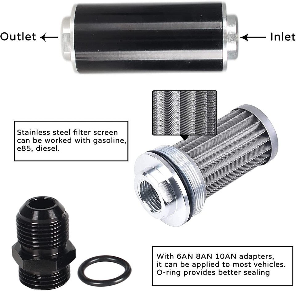 10 Micron Fuel Filter Glaciere Electrique Universal 100 Micron Inline Fuel Filter Kit With 6AN 8AN 10AN Adapters & 50mm Mounting Bracket & Wrench Cleanable Black/Red Evil Energy Electric Cooler Filtro De Filtre Carburant Aluminium Nettoyable Gubeter Filtre à Carburant En Ligne 6AN 8AN 10AN Adaptateur Filtre Carburant Universel 6AN 8AN 10AN Filtre à carburant : protège le système de carburant de votre véhicule contre les contaminants, tels que : la saleté, la rouille et les particules de peinture Filtre en acier : élément de 100 microns Piège les contaminants avant qu'ils ne pénètrent dans le système d'alimentation en carburant pour améliorer les performances du moteur Les joints toriques font un bon travail d... Application : filtre à carburant universel, notre filtre à carburant avec adaptateurs 6AN 8AN 10AN, appliqué à la plupart des véhicules. EVIL ENERGY Filtre à carburant en ligne 10 microns avec adaptateur 6AN 8AN 10AN et collier de serrage 50 mm universel. 4,7 sur 5 étoiles 621. 1 offre à partir... Bien fabriqué : notre filtre à carburant est fabriqué en alliage d'aluminium T6061 de haute qualité, amovible et réutilisable. Durable : notre filtre à carburant dispose d'un joint torique pour une étanchéité positive dans les applications à haute pression.