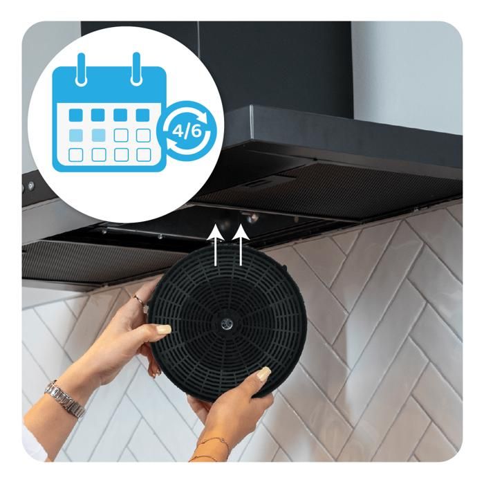 Installez correctement le filtre Installation facile Aucun outil requis, remplacement rapide. Filtration haute-performance Charbon actif de haute qualité : capture efficacement les fumées, odeurs et graisses. Une cuisine sans odeur. Lot de 2 Filtres à Charbon pour Hotte Smeg - FLT6 - 190mm | Leroy Merlin Remplacez le filtre régulièrement Sa conception (H : 4,8 cm / Ø : 14,5 cm) permet une installation rapide, sans outil., Un air plus pur. Filtre charbon TYPE47 CFC0141497 pour Hotte ELICA, ESSENTIEL B, TURBOAIR , HOTTE DECORATIVE... Compatible avec les modèles suivants : ELITE, ERA52, AURORA, TT26STGRXA60, EHT601SESCAMOTABLE, KSG52E, KSG52HE, KSG52HE Grâce à son charbon actif de haute qualité, ce filtre absorbe efficacement les fumées, graisses et odeurs, garantissant une qualité d’air optimale dans votre cuisine. Air purifié Améliore la qualité de l’air et l’hygiène dans votre espace cuisine. Filtre MOD58 Diamètre 145mm Filtre à Charbon Pour Hotte ELICA ERA S | Leroy Merlin Compatible Elica Smeg EssentielB Selon l'utilisation de la hotte, il est conseillé de changer le filtre à charbon au moins une fois par an (si vous l'utilisez fréquemment ou si vous utilisez beaucoup de graisse, comme la friture, nous vous recommandons de le faire plus souvent Compatible avec les marques suivantes : ELICA,ESSENTIEL B,SMEG