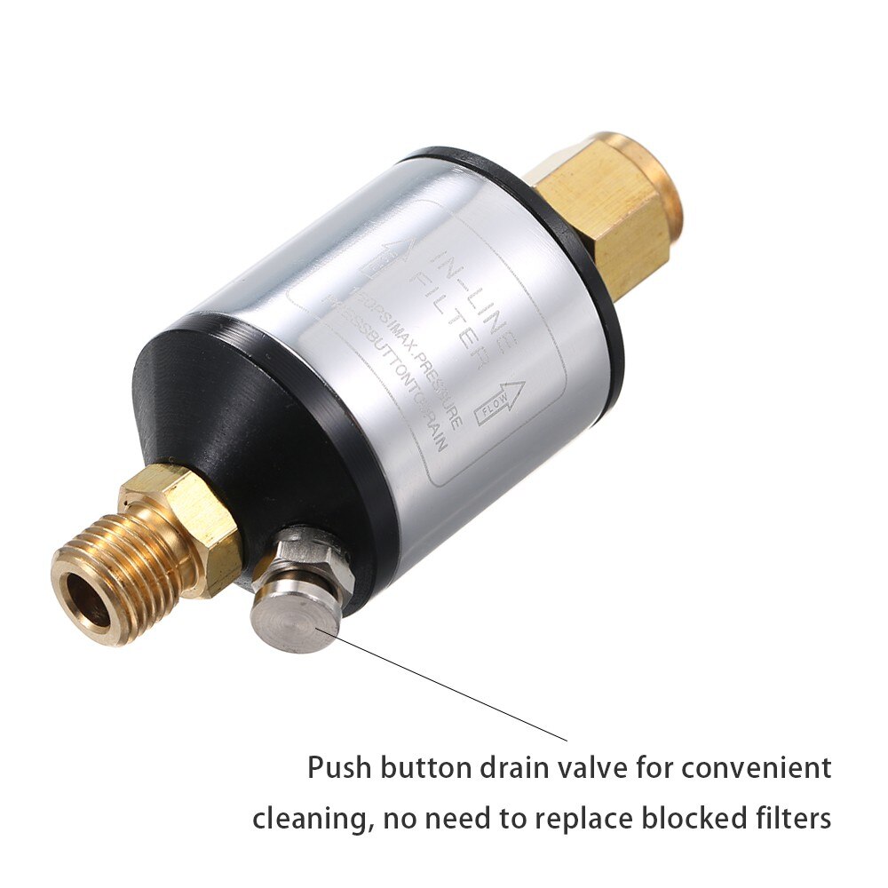 Caractéristiques : Nom du produit : Filtre r Matériau : plastique., Couleur : noir, argenté., Dimensions : 60 x 33 mm. Silencieux de compresseur d'air à filetage mâle de 20 mm Design robuste : corps en clinker avec un filtre éponge pour plus de durabilité et une filtration efficace. * Il élimine les particules solides comme la poussière et de l'air, permettant à votre compresseur de fonctionner à des performances optimales. Niveau avec thermomètre 127 mm filetage mâle M 12 Diamètre du filetage mâle : 20 mm. Le filtre à air est l'un des éléments les plus critiques dans un compresseur. FILTRE AIR Pour Compresseur Pi ce de Rechange Universel Silencieux... Installation facile : processus d'installation simple et sans tracas. Caractéristiques : * Il est adapté pour une connexion directe, un compresseur d'air, une petite pompe à air, un compresseur d'air à piston, etc. Connexion directe : convient pour une connexion directe à différents types de compresseurs d'air, de petites pompes à air et de compresseurs d'air à piston. Pièce Détachée Compresseur 50l Filtre D'entrée D'air En Métal Pour Compresseur D'air 1/2" MPT 20 Mm Filtre Compresseur Les filtres à air comprimé Atlas Copco sont conçus pour réduire les fuites, les blocages et l'humidité, garantissant ainsi des performances de compresseur efficaces et durables Caractéristiques : matériau : plastique, métal ; couleur : noir, argent ; dimensions : 60 x 33 mm (D x H) ; diamètre du filetage mâle : 20 mm.