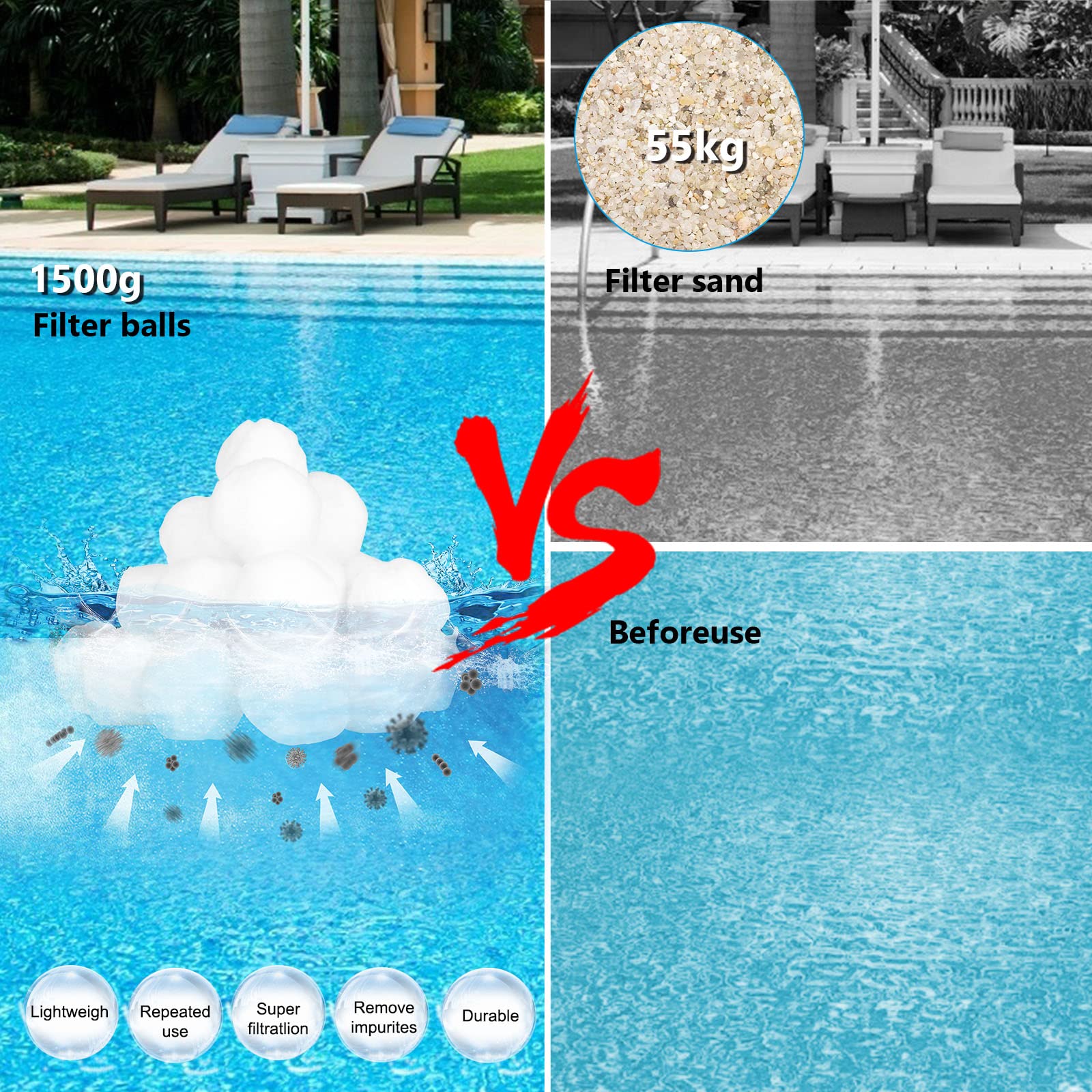 Les billes filtrantes Bearbro sont plus légères et plus efficaces que le sable filtrant traditionnel. Il suffit de le verser sur la machine, également adapté à votre système de filtre à sable Filter Ball est facile à utiliser et peut être utilisé dans n'importe quel système de filtre à sable commun. Zone de remplissage: 70-85kg / m³ Le média filtrant de qualité supérieure prolonge la durée de vie du filtre et remplace parfaitement le sable filtrant, le verre filtrant et d'autres médias. 【Haute polyvalence】 Filtre unique diamètre 50 cm; poids total: 1400g; Il peut remplacer le sable filtrant de 50 kg. Il présente les avantages d'une résistance de filtration élevée, d'une vitesse de filtration rapide, d'une longue durée de vie, réutilisable. Boule De Coton Boule De Filtre De Piscine Pour Pompe De Filtre À Sable, Boules De Billes Filtrantes Piscine Tubiaz Boules filtrantes pour filtre à sable alternative 25 kg, Lavable 1400g blanches Matériau léger, haute perméabilité et longue durée de vie, le lavage n'a pas besoin d'être répété. Contrairement au sable, la bille filtrante ne bloque pas votre filtre et nécessite moins de lavage à contre-courant à des fins d'entretien. Il convient également aux pompes de filtration à sable en eau salée. Boules Filtrantes Pour Systmes De Filtration Sable, Boules Filtrantes... Les billes filtrantes sont composées à 100% de polyéthylène. Il présente les avantages d'une résistance de filtration élevée, d'une vitesse de filtration rapide, d'une longue durée de vie, d'une bonne élasticité réutilisable et d'une faible perte. Les boules filtrantes Bearbro sont universellement applicables à la plupart des nettoyeurs de piscine des chaudières à filtre. Balles Filtrantes,Boules de Filtre de Piscine,Filtre pour Piscine de... Avoir une longue durée de vie et économiser de l'énergie. Qu'il s'agisse d'une piscine dans un jardin, d'un espace piscine ou d'un nettoyage d'aquarium. Vitesse de filtration: 20-85m / h