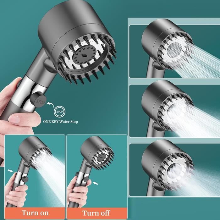 La surface chromée délicate le rend léger, durable, inoxydable et ne se décolore pas et vous offre une douche sûre et confortable. Pommeau De Douche Avec 2M Tuyau Filtre Economie Deau, Pommeau Douche... La carte principale est la perspective du filtre. Cette pomme de douche haute pression contient un filtre en PP de haute qualité qui purifie efficacement l'eau et maintient l'équilibre du PH de l'eau. Pommeau De Douche Filtrant Pommeau De Douche Haute Pression Avec Filtre à Eau, Flexible Et Support De Douche - Douchette Main SPA Shower - Bricolage Douchette économie Eau 4 Modes Massage 【Note】L'élément filtrant est déjà installé dans la pomme de douche et aucune installation secondaire n'est nécessaire. 【Pommeau de Douche Haute Pression】: Cette puissante pomme de douche utilise la technologie de pression d'air, qui peut augmenter la pression de l'eau. Le tuyau de douche amélioré est résistant à la chaleur et à la déchirure, et peut être facilement connecté à votre bec de douche existant avec un filetage universel G1/2' sans aucun outil ou plombier. Veuillez vérifier la page des détails pour la carte réelle du produit. La couleur du tuyau flexible fourni en cadeau avec la douchette est aléatoire et ne peut pas être choisie. Débarrassez-vous de tous les problèmes des pommeaux de douche traditionnels et profitez d'une douche à effet pluie saine. 【Matériau ABS de qualité supérieure 】: ce pommeau de douche puissant économiseur d'eau est fabriqué en matériau ABS de haute qualité. Pommeau De Douche Haute Pression À Économie D'Eau,7 Modes De Douchette... Avec une eau dense et puissante, il vous offre une expérience de pluie à couverture complète. VEUILLEZ NE PAS UTILISER CETTE TÊTE DE DOUCHE SUR LA DOUCHE ÉLECTRIQUE. Pommeau de Douche Douchette avec 5 Mode Economiseur d'eau Haute Pression et Bouton de interrupteur Buse en Silicone - Bricolage