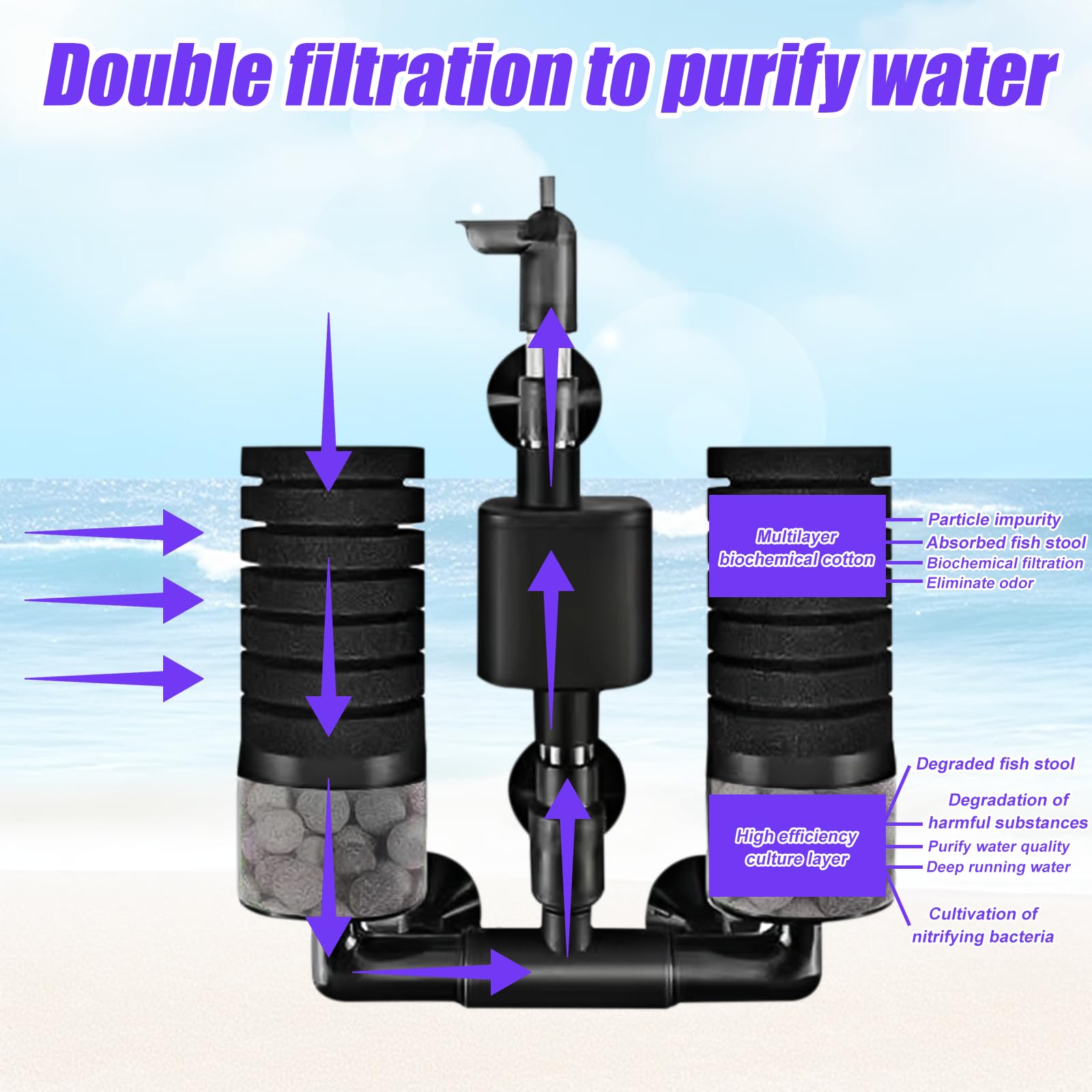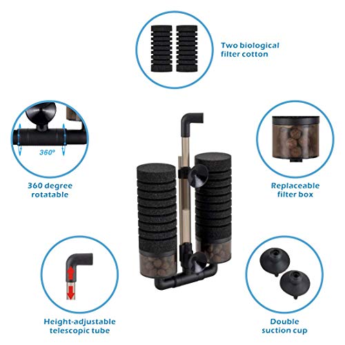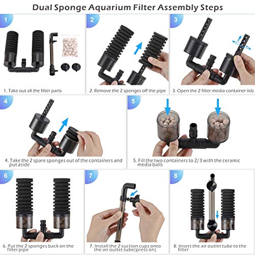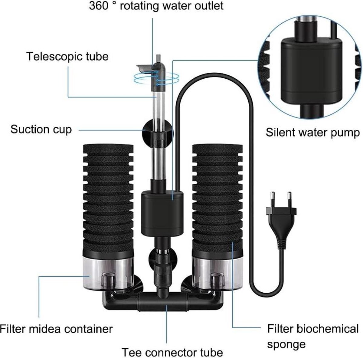 Contenu : 1 matériau filtrant. SALUTUYA Filtre éponge submersible pour aquarium Filtre à ponge... Le filtre éponge d'aquarium sur le filtre éponge est réglable, de sorte que vous pouvez changer la direction du filtre éponge d'aquarium Convient pour l'eau salée ou l'eau douce : filtre d'aquarium électrique, idéal dans les aquariums de crevettes, poissons ou bassins d'élevage, peut également être utilisé dans n'importe quel autre jardin, hydroponique. Filtre 5W Avec Boîte à Média SINMI Taille M Filtre éponge Pour Aquarium - Double éponge Filtrante Filtration Pour Aquarium Crevettes Poissons Facile à utiliser : avec un tuyau d'air, connectez une extrémité à votre pompe à air et l'autre extrémité à ce filtre éponge d'aquarium. Filtre éponge d'aquarium - Filtre en éponge - Filtre électrique - Avec boule filtrante - Double éponge silencieuse - Pour filtration biologique et mécanique Description du produit : Design pratique : le filtre éponge d'aquarium offre un écoulement d'eau rotatif à 360°. Design pratique : le filtre éponge d'aquarium offre un écoulement d'eau rotatif à 360°. Le kit de filtre éponge d'aquarium dispose d'une boîte à matériaux filtrants pour placer des matériaux filtrants Nettoyage facile Filtre électrique d'aquarium : pour nettoyer ou remplacer, il suffit de retirer les 2 éponges du kit de filtre éponge d'aquarium, de rincer et d'appuyer sur les éponges dans l'eau du réservoir usagée, le kit de filtre éponge d'aquarium ne rincez pas l'éponge avec de l'eau du robinet ou de l'eau chaude, nettoyez le filtre électrique de l'aquarium toutes les 2 semaines. Filtration efficace : le kit de filtre éponge pour aquarium absorbe les particules fines, le kit de filtre éponge d'aquarium maximise la purification de l'eau. Dimensions : 30 x 19 x 7 cm Puissance : 5 W. Double filtre : filtration physique filtration biochimique] Le coton biochimique de qualité supérieure a un design nervuré pour agrandir la surface, capture les particules de saleté plus grosses pour purifier l'eau Le filtre éponge d'aquarium peut être ajusté, les filtres en mousse silencieux répondent à différentes exigences. Filtre d'aquarium électrique élimine les matières en suspension et les polluants dans l'eau de l'aquarium, assure une qualité d'eau claire, le filtre d'aquarium électrique augmente la teneur en oxygène et nettoie l'environnement en caoutchouc de l'aquarium Filtre double éponge pour aquarium avec filtre (s