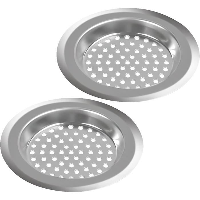 Grille évier Cuisine Lot De 2 Filtre à évier De Cuisine, MXTIMWAN Filtre De Vidange En Acier Grille Pour Evier Cuisine Matériau en acier inoxydable durable : acier inoxydable robuste avec des ouvertures uniformes, pas besoin de visser ou de percer des trous, ouvertures uniformes, utilisé pour évacuer l'eau et bloquer les résidus de nourriture, de cheveux et de chapelure dans la cuisine et la salle de bain, pour éviter le colmatage, il n'est pas facile à... Kit de filtre à cheveux pour douche, filtre à cheveux de remplacement 【Facile à utiliser】 Placez-le simplement dans l'ouverture de l'évier de la cuisine et utilisez-le, avec une conception en maille dense, la perforation haute densité permet à plus d'eau de passer et bloque mieux les particules alimentaires que les diaphragmes plus grands, empêche l'eau de fuir dans le drain. 2 Pcs Filtre évier Cuisine,Tamis lavabo en Inox Filtre Cheveux Douche... 【Utilisations multiples】Il peut être utilisé dans les baignoires, les drains de cuisine et peut facilement intercepter les résidus alimentaires, les cheveux et autres articles divers pendant le drainage, les bains et les douches pour empêcher les aliments et les cheveux de se boucher dans les salles de bains et les cuisines. Il est réutilisable. Il ne rouille pas, ne se déforme pas et ne se décolore pas facilement. 【Durable】La crépine d'évier de cuisine est en acier inoxydable, durable, belle à regarder, les bords arrondis ne vous rayeront pas les mains, s'adapte à la plupart des éviers.
