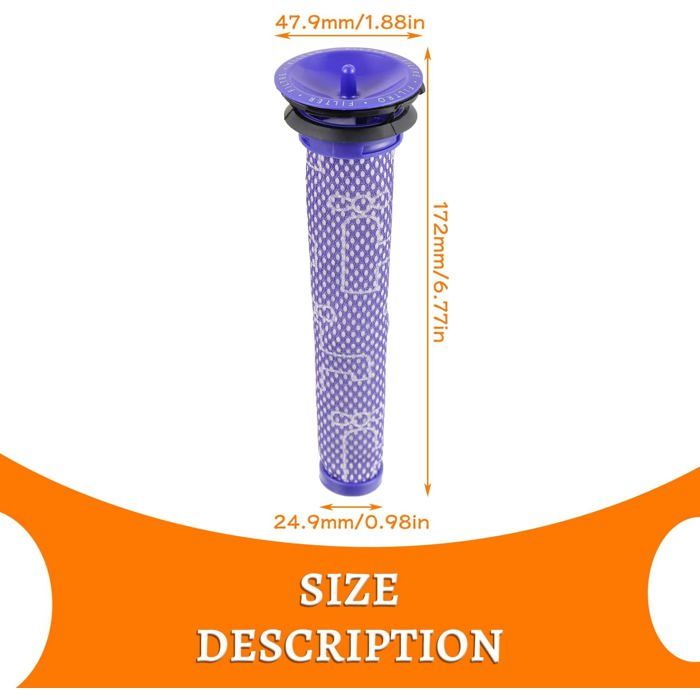 Filtre Aspirateur Dyson Pré-filtre Post-filtre Rechange Filtres Rechange Dyson V7 V8 - Pré-filtre Et Post-filtre - Compatible Animal/Absolute Dyson Aspirateur Sans Fil Filtration 99.97% Particules Dyson Robot aspirateur -Meilleur kit de pré-filtre et 2 filtres HEPA pour Jelter Lot de 6 post-filtres Dyson V6 copatibles avec filtre HEPA Dyson V6, 3 post-filtres, 3... L'utilisation d'un filtre garantit des performances optimales et un investissement rentable. Il est recommandé de le nettoyer toutes les 2 à 3 semaines et de le remplacer tous les 2 à 3 mois pour garantir son efficacité. Ce préfiltre élimine 99,97 % des particules en suspension dans l'air, jusqu'à 0,03 micron, grâce à une aspiration puissante et prévient efficacement la pollution secondaire de l'air, améliorant ainsi automatiquement la qualité de l'air et favorisant votre bien-être. Modèle d'appareil compatible : notre filtre de rechange est parfaitement adapté aux aspirateurs Dyson V6 Absolute, V6 Absolute (rouge), V6 Absolute +, V6 Absolute Exclusive, V6 Absolute Exclusive, V6 Absolute Extra, V6 HEPA et V6 Total Clean. Notre lot de 2 filtres HEPA V6 pour Dyson est le meilleur rapport qualité-prix. D'une durée de vie de 4 mois, il vous permettra d'économiser encore plus d'argent et de vous simplifier la vie. Vous allez l'adorer ! Filtre HEPA pour V6 et Lot de 2 Pré-filtres de rechange compatibles pour aspirateur Dyson DC58...