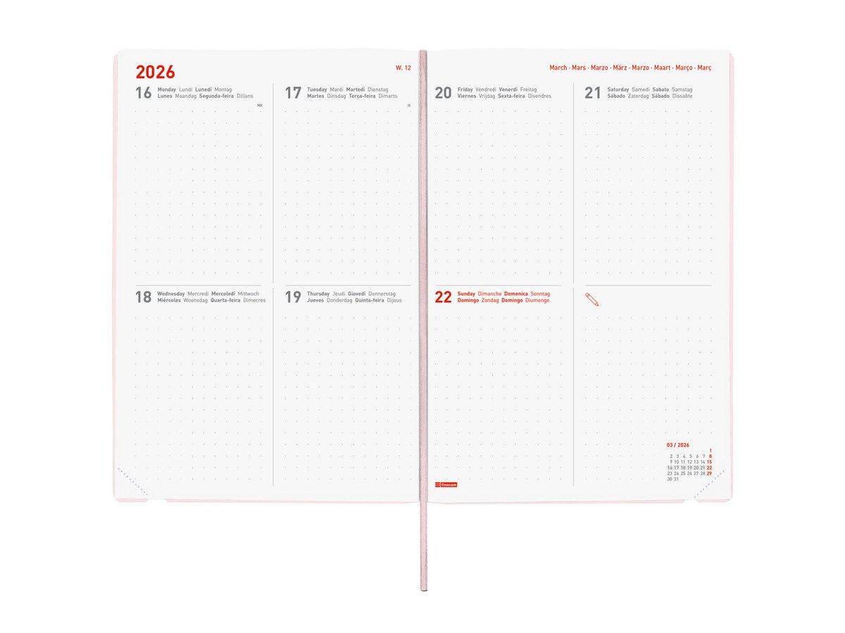 Matériau : couverture en polypropylène opaque, spirale simple métallique et papier., 80 g/m². Intérieur : vue hebdomadaire horizontale. Agenda 2026 Finocam Agenda Semainier Horizontal 2026 De Janvier à Agenda Janvier à Décembre 12 Mois Durée : janvier 2026 à décembre 2026 (12 mois) Agenda 2024 Spirale Beta Portugais Semaine Vue Horizontale Janvier 2024 - Décembre 2024 (12 Finocam – Agenda 2026 1 Jour par page | Janvier – Décembre (12 mois) | Agenda annuel 2026 avec élastique et signet en ruban tissé | Couverture rigide Porto... Contenu : l'annualité de l'agenda comprend des informations sur les jours fériés, les changements de saison et le début des nouvelles années chinois, musulman, orthodoxe et hébreu. Aperçu de la semaine complète à l'horizontale pour une écriture naturelle. L'agenda dispose également d'autres contenus supplémentaires : données personnelles, calendriers, planning annuel de l'année et de l'année suivante, jours fériés internationaux, carte des fuseaux horaires, feuilles blanches et feuilles téléphoniques, adresses et e-mails. Idéal à emporter avec vous, en combinant les thèmes personnels et professionnels. Langue de l'article : portugais. Couverture légère en polypropylène et élastique.
