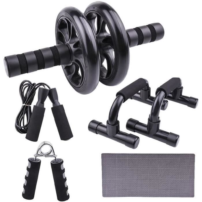 Accessoires Sport Corde à Sauter Poignées Pompe Lot De Sport Musculation Fitness Kit De 3 Roue Abdominale Entrainement Kit Musculation Roue abdominale - Yokata - AB Roller - Tapis inclus - Fitness - Compact et léger - Sport Aurorast Kit Musculation 3 pièces-Roue Abdominale avec Genou Tapis Corde à Sauter Adulte... Grâce à ces poignées vous travaillerez tout le haut du corps (bras, épaules, pectoraux) et vous renforcerez votre sangle abdominale. - 1 roue à abdominaux stable et confortable vous solliciterez toute votre sangle abdominale et protégerez ainsi vos lombaires. - 1 corde à sauter ajustable vous engagerez l’ensemble des muscles de votre corps (haut du corps, bas du corps et sangle abdominale) , vous brûlerez des calories (700 en moyenne) et votre corps sera tonifié. Ce kit comprend : - 2 poignées pour pompe solides, antidérapantes et confortables qui vous permettront de gagner en amplitude et de ne pas casser vos poignées lors de vos exercices. Livré de France par une société Française, 1 roue à abdominaux stable et confortable vous solliciterez toute votre sangle abdominale et protégerez ainsi vos lombaires. 1 pince à main pour renforcer votre main et vos avants bras et augmenter votre préhension. Roue abdominale | Roue d'exercice abdominale portable avec poignées – Entraînement des...