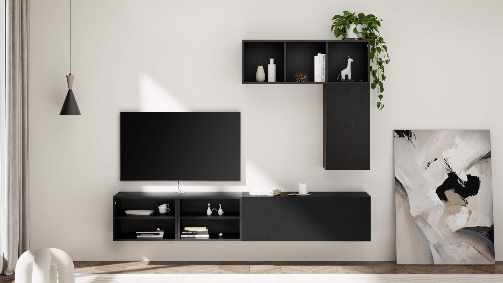 Passe-câble en aluminium anodisé Meuble TV grand et spacieux, de style moderne, composé de deux portes latérales et d'un compartiment ouvert avec une étagère. 2 passe-câbles utiles en aluminium anodisé (ne rouille pas et ne raye pas) pour une meilleure organisation des câbles. Dos fermé: permet de positionner le meuble pas nécessairement devant un mur. Passe-câble en aluminium anodisé utile (ne rouille pas et ne raye pas) pour une meilleure organisation des câbles. Pour vous aider à monter le support TV Rachele, il y a aussi une vidéo sur YouTube qui vous guidera pas à pas dans le montage du meuble. Accrochage facile des 2 portes grâce aux charnières Grass (avec base droite). Meuble TV Design Mobili Fiver, Meuble TV Rachele, êne Noir - Bois | FindTheDeal Meuble TV Design Moderne Meuble TV 1 porte 2 tiroirs 180x44x60,5 cm en bois de frêne noir DESIGN MODERNE: Donnez du style à votre salon avec ce meuble TV moderne durable et robuste, fabriqué en stratifié mélaminé de haute qualité. Parfait pour accueillir tout le matériel audio et vidéo, vous permettant de ranger dans ses 2 compartements, tous les accessoires à avoir toujours sous la main. La surface du meuble TV Rachele est légèrement rugueuse au toucher et peut être nettoyée avec un chiffon humide et un détergent doux. DESIGN MODERNE: Donnez du style à votre salon avec ce meuble TV moderne durable et robuste, fabriqué en stratifié mélaminé de haute qualité. La simplicité et le minimalisme de ce meuble TV fonctionnel en feront la star incontestée de votre salon Le produit arrive démonté dans deux colis dont les mesures sont de 165x50x11 cm pour l'un (poids: 28 kg) et 72x48x12 pour l'autre (poids: 10 kg). MADE IN ITALY: L'authentique Made in Italy de Mobili Fiver allie design, qualité et style. D'autres produits montrés sur les photos NE sont pas inclus. Meuble TV BESS – frêne foncé. 153,44 €. sur Kaufland. Aller sur la boutique · Mobili Fiver, Meuble TV Rachele, Bois Rustique - Frêne Noir, 150 cmx42 cmx48 cm... Le produit est destiné à un usage exclusivement intérieur. Nos meubles sont conçus et fabriqués dans nos usines italiennes, et ils n'attendent qu'une chose : s'installer chez vous ! Hauteur idéale pour une parfaite visualisation de l'écran, que vous soiez assis ou allongés, c'est le meuble adapté pour placer le téléviseur.
