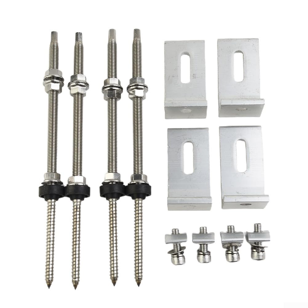 Réglable et sécurisé : le luminaire de toit trapézoïdal à vis M10 avec angle en L est doté de vis de poteau en acier inoxydable (M10 x 200/250 mm) qui sont conçues pour un montage sécurisé des systèmes solaires photovoltaïques. Fixation de panneaux solaires sur tuiles K2SYSTEMS | Position... Construction : fabriqué avec un alliage d'aluminium et des matériaux en acier inoxydable, ce luminaire est conçu pour résister à diverses conditions météorologiques et une performance durable. Détails : *Matériaux : alliage d'aluminium + acier inoxydable. Accessoire Installation Solaire Kit De Fixation 10 Panneaux Solaires Pour Toit En Tôle Ondulée Sur 2 Lignes | Orientation : Paysage - ESDEC | SoluSun Kit Montage Photovoltaïque Il est adapté pour une utilisation sur des toits en tôle ou en tôle ondulée et peut également être fixé au mur avec ventilation arrière. Caractéristiques : * * Vis de poteau en acier inoxydable M10 x 200/250 mm, adaptées pour le montage solaire photovoltaïque s * Hauteur réglable avec entraînement hexagonal SW7, entièrement pré-monté et avec Joint EPDM résistant aux intempéries et écrous de verrouillage *Pour montage sur le toit pour monter vos rails profilés en aluminium, sur lesquels sont ensuite fixés les modules solaires/photovoltaïques. 【Installation polyvalente】Ce luminaire est conçu pour être monté sur les toits pour accueillir vos rails profilés en aluminium, sur lesquels les modules solaires/systèmes photovoltaïques seront fixés. Les matériaux utilisés offrent une excellente résistance, ce qui le rend adapté pour une utilisation en extérieur. La couleur argentée ajoute un look élégant et élégant à votre système solaire photovoltaïque. * Les dimensions de la pierre à rainures sont comme sur la photo, veuillez vérifier avant d'acheter si votre taille de rail est adaptée. Contenu de l'emballage : Lot de 4 vis de poteau de 200/250 mm avec plaque d'adaptation en L. Support de fixation en inox M10 x 250 avec fente, vis double filetage... *Pour montage sur tôle ou toiture ondulée, ainsi que pour montage mural avec ventilation arrière. Le contenu de l'emballage est soigneusement pour répondre aux exigences de l'installation du système solaire photovoltaïque, ce qui le rend pratique et sans tracas. Fixation Toiture Tuile - Tôle - Bitume - Bois (3