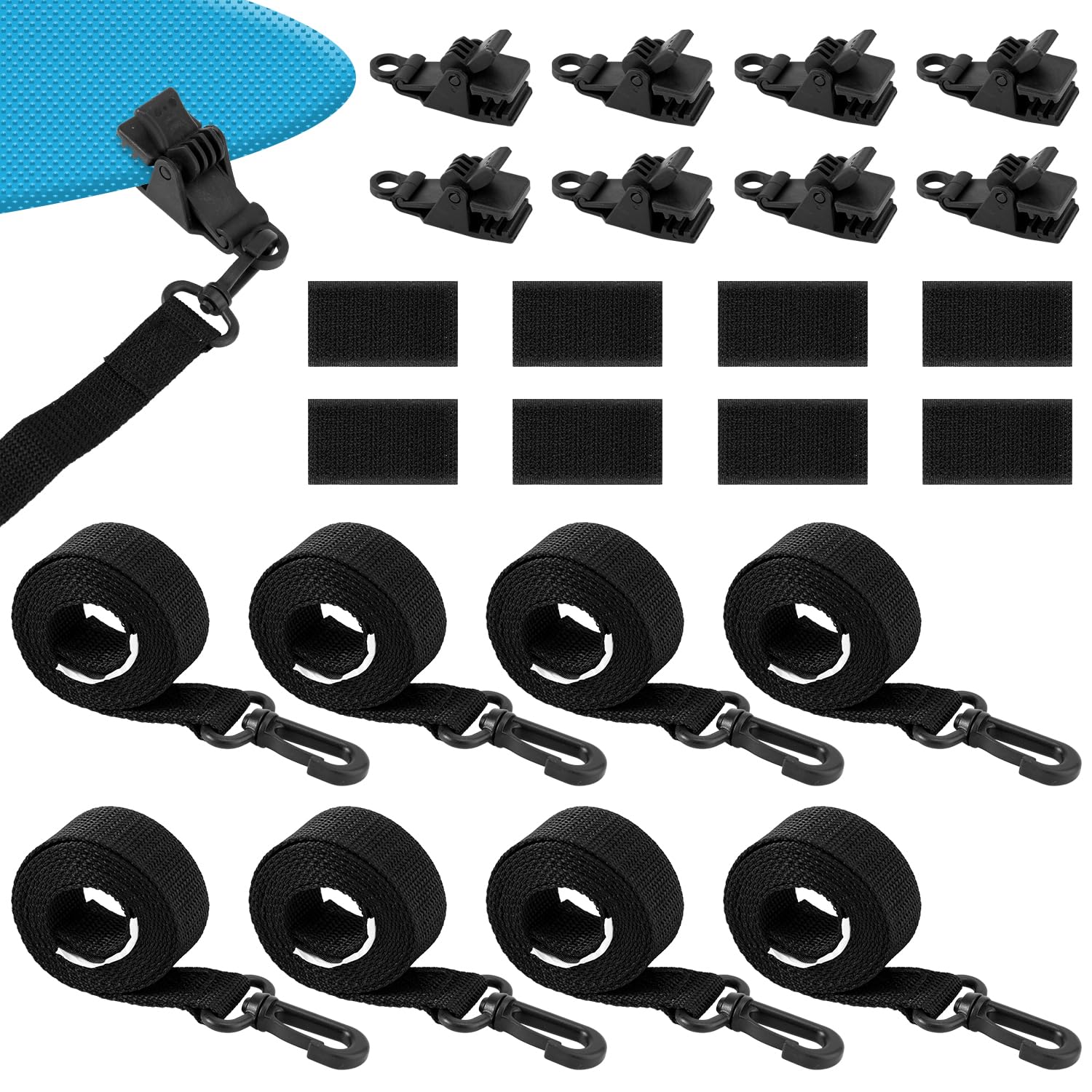 Lot de 5 supports de bâche solaire en fore de U pour garder la bâche de piscine loin du sol Son design élégant en blanc et noir s'intègre parfaitement à votre piscine et son environnement. Kit Fixation Piscine Hors Sol Kit De Fixation Pour Bâche Solaire De Piscine - Un Lot Comprend 8 Attache Bache A Bulle Piscine Idéal pour les fixations de piscine : Avec ses 8 sangles, 8 plaques de montage et 8 boucles, ce kit offre une compatibilité universelle pour les bâches solaires de toutes tailles. Clips de attache bache piscine (8 pièces) pour fixer une bâche de piscine ou un film de protection solaire de piscine à un rouleau de piscine. Fabriquées en nylon et PP de haute qualité, ces cordes sont non seulement robustes et durables, mais protègent également les sangles et les boutons-pression des rayons UV puissants et du chlore Kit de Fixation pour Bâche Solaire de Piscine, Sangles pour Bache Piscine, 8 Sangles de Bâche... Compatibilité Universelle:Notre kit de fixation s'adapte à toutes les bâches et enrouleurs, que ce soit pour une piscine Intex ou une piscine hors sol, offrant une compatibilité maximale pour vos accessoires de piscine Idéal pour les familles ou les propriétaires de piscines tubulaires, il simplifie la maintenance tout en protégeant votre bâche. Rapport Qualité Prix Élevé:Bénéficiez d'un kit de fixation économique sans compromis sur la qualité, parfait pour les piscines de toutes tailles, avec des sangles et clips robustes pour une fixation optimale Les sangles en nylon et PP résistent aux UV et aux intempéries, assurant une longévité exceptionnelle. Offrez vous un kit de fixation de qualité supérieure, parfait cadeau idéal pour améliorer l'expérience de la piscine Spécifications : Matériau: Nylon et PP Couleu: Blanc,Noir Longueur: Environ 1,8 mètre Poids: 180g Contenu: 8 sangles 8 plaques montage 8 boucles Caractéristiques : Installation rapide et longue durée de vie: Profitez d'une installation rapide et sans effort avec le 8 Kit de Fixation pour Bâche Solaire de Piscine.