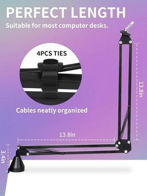 Suport pentru microfon de birou, Compatibil cu cu Blue Yeti/Snowball NT-USB Bras icro - Support icro Réglable, Pied icro Bureau pour... Accessoire Podcast Enregistrement Support De Micro Bureau, Bras De Fixation Réglable Avec 1/4"-3/8"-5/8 Support Micro Bureau 1 Pour visioconférence 2 Pour podcast 3 Pour streaming 4 Pour enregistrement Idéal pour les microphones lourds et équipements professionnels. Suport pentru microfon de birou, Compatibil cu cu Blue Yeti/Snowball... 【Stabilité et robustesse inégalées】Conçue en acier à haute teneur en carbone avec une base lestée de 1,5 kg, cette station supporte 1,2 kg de charge (31 % de plus que les concurrents). Permet une transition instantanée entre gaming, studio et conférence. 【Design compact et portable】Bras microphone pliable et base compacte de 20 cm pour une portabilité maximale dans les espaces restreints, parfait pour les créateurs nomades. 【Base entièrement protectrice】Le revêtement EVA antidérapant réduit les impacts pour une sécurité optimale de votre équipement, tout en protégeant votre surface de travail et en garantissant une stabilité accrue.