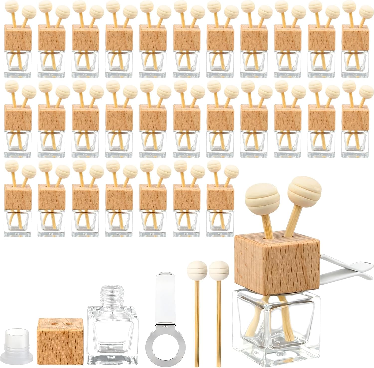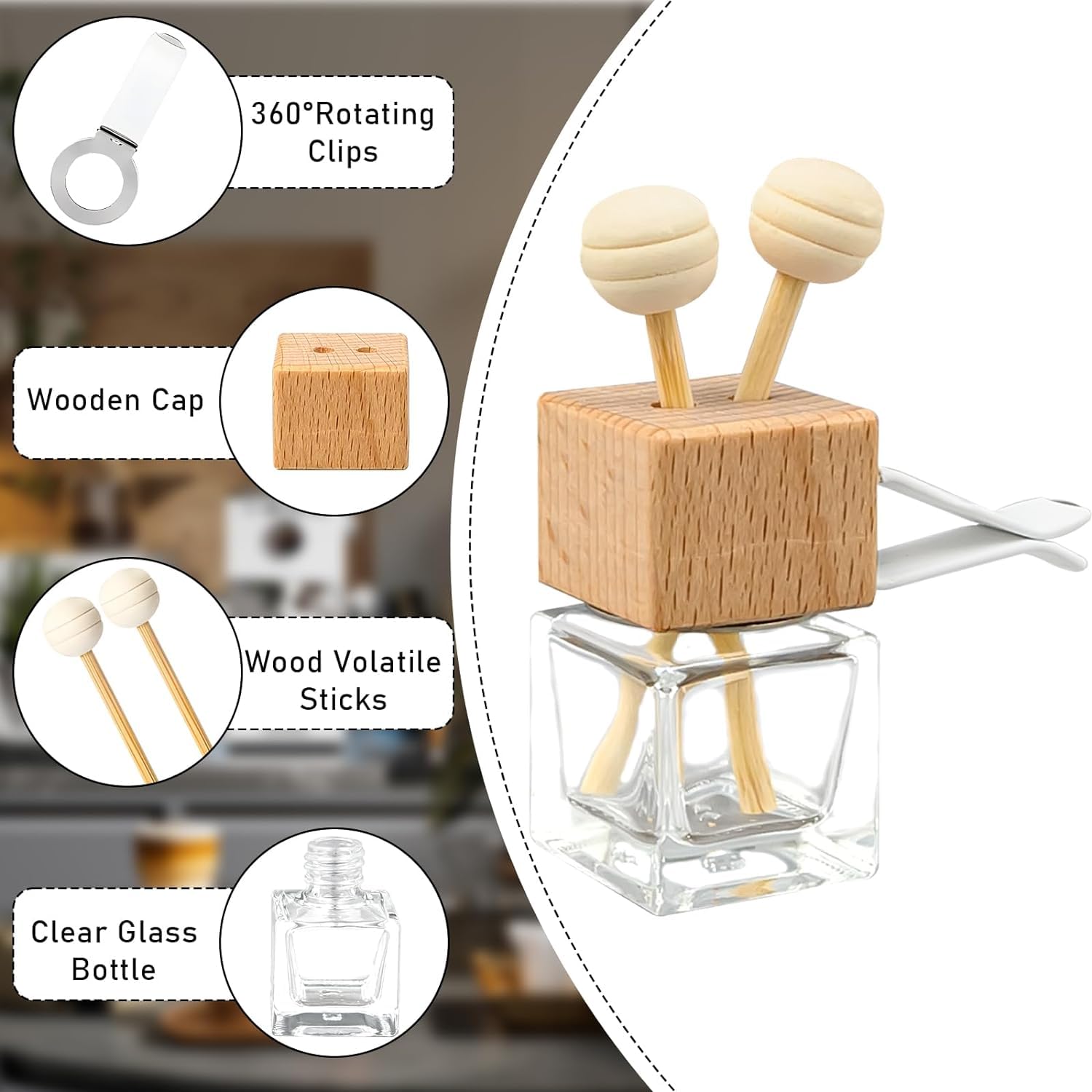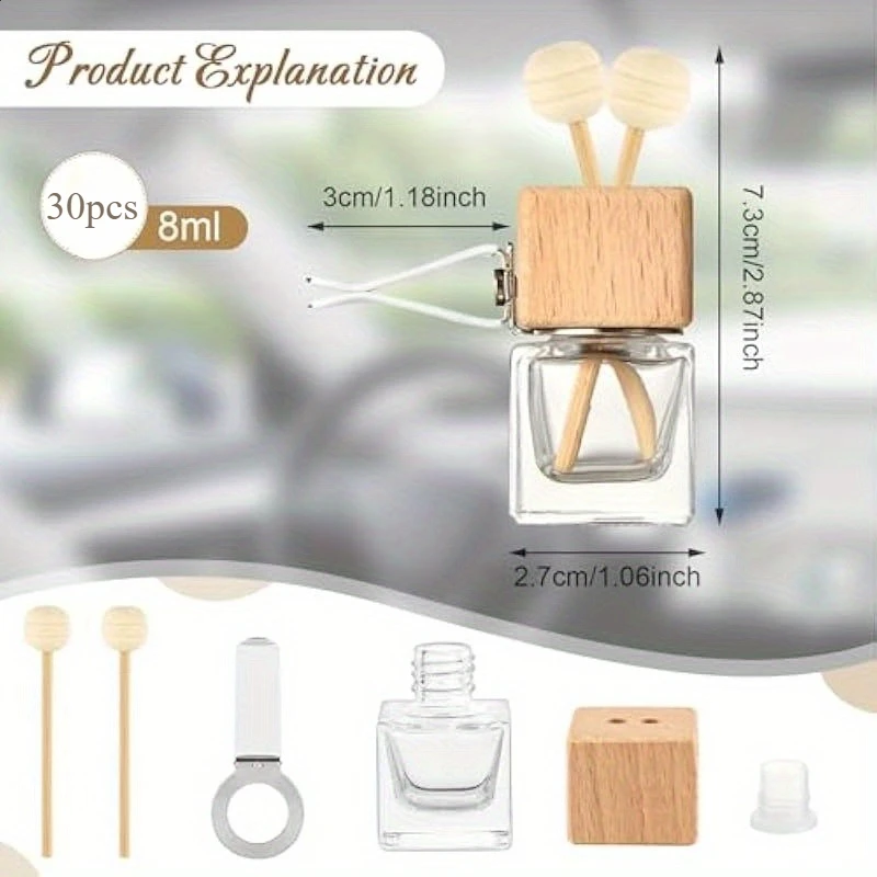 Flacon Huiles Essentielles Voiture Flacon Diffuseur Pour Voiture Diffuseur D'Huiles Essentielles En Verre Bouteille Rechargeable Parfum D'intérieur 30 Pièces Bouteille De Parfum De Voiture Bouteilles De Parfum Vides Le flacon en verre avec une pipette, vector dessin réaliste. Flacon vide transparent avec une... Caractéristiques: Contenu du lot : 30 diffuseurs de parfum voiture Capacité par flacon : 8 ml Dimensions : environ 6,8 × 2,5 cm Matériaux : verre transparent, bouchon en bois, bâtonnet absorbant Accessoires inclus : clips de ventilation réglables Utilisation : huiles essentielles, parfums liquides, désodorisant voiture et maison Réutilisable : oui Fixation : clip sur grille d’aération ou suspension Ces diffuseurs d’huiles essentielles sont conçus pour être réutilisables : leur flacon transparent permet de visualiser le niveau de liquide restant, et leur taille compacte s’adapte parfaitement à tout type de véhicule. Multifonctions, ces flacons peuvent également être utilisés comme désodorisants dans la maison, au bureau, dans une salle de bain, un placard, ou encore suspendus comme élément décoratif parfumé. Quantité suffisante à utiliser et partager : vous recevrez 30 diffuseurs de parfum pour voiture, chacun équipé d’un clip de fixation et d’un bâtonnet en bois. Apportez une touche de fraîcheur et d’élégance à votre véhicule avec ce lot de 30 diffuseurs de parfum pour voiture, parfaits pour les amateurs d’aromathérapie ou ceux qui souhaitent un intérieur toujours agréablement parfumé. Compact et léger, il se fixe facilement sur la grille d’aération de votre voiture ou se transporte aisément Facile à utiliser : remplissez le flacon d’huile essentielle (non incluse), fixez-le à la grille d’aération à l’aide du clip réglable, insérez le bouchon en bois et profitez d’un parfum agréable dans votre habitacle Usage multiple : ces diffuseurs de parfum ne sont pas seulement destinés à la voiture, mais conviennent aussi pour parfumer une pièce, un bureau, une salle de bain, un placard ou être utilisés comme éléments décoratifs Découvrez notre Diffuseur de Parfum pour Voiture Diamant, une solution idéale pour rafraîchir l'atmosphère de votre véhicule. En plus de neutraliser les odeurs, notre diffuseur parfume subtilement l'air, créant une atmosphère agréable grâce à son bouchon assurant une diffusion homogène