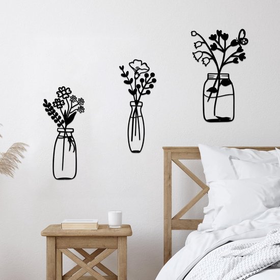 KAI-Décor de mur en métal Sculpture Murale 3D Minimaliste Moderne... Design unique : l'art mural noir simple de la ligne rétro est composé de trois vases combinés avec le fond des fenêtres, l'apparence est simple et élégante, ce qui peut créer une atmosphère romantique de la maison Facile à accrocher : il y a un trou réservé sur les deux côtés de la décoration murale en métal, vous pouvez utiliser les clous équipés pour l'accrocher facilement au mur, simple et pratique Style Rétro élégant Intérieur Fleur En Métal Décoration Décoration Murale Métal Noir HZBAKLO - Sculpture Fleurs Minimaliste | 31x39cm Intérieur Extérieur Sculpture Murale Minimaliste Art Mural Noir 31x39 Cm Moderne Matériaux de haute qualité : cette décoration murale en métal est fabriquée en fer de haute qualité avec de la peinture aérosol noire qui ne se décolore pas facilement et peut être utilisée pendant une longue période à l'intérieur et à l'extérieur Design unique : l'art mural noir simple de la ligne rétro est composé de trois vases combinés avec le fond des fenêtres, l'apparence est simple et élégante, ce qui peut créer une atmosphère romantique de la maison Décoration murale minimaliste en métal, ligne noire... Décoration murale en métal noir, vase en métal, sculpture murale minimaliste à suspendre pour salon, cuisine, chambre à coucher, salle de bain Sculpture Murale Fleurs Décoration Murale Métal Noir HZBAKLO