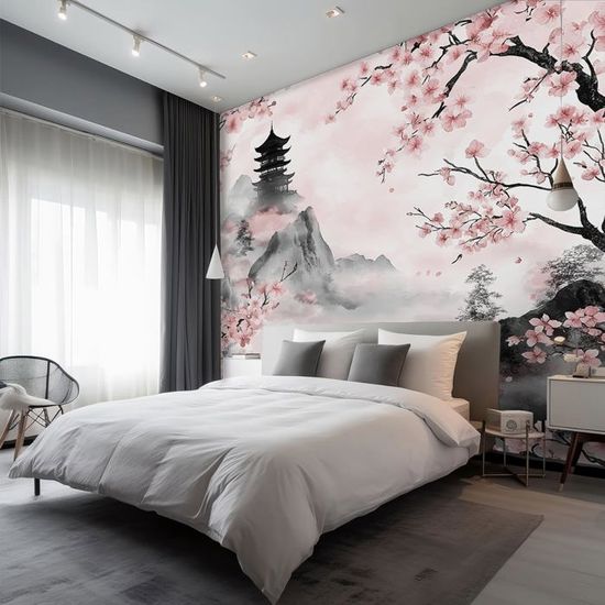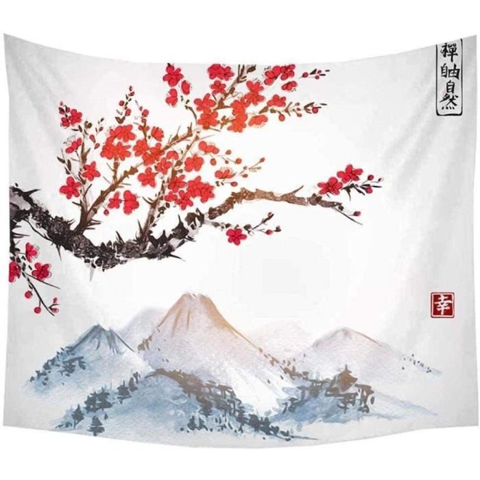 150X100Cm Tapisserie Murale Fleur De Cerisier Rouge Tenture Murale... Fleurs tapisserie murale | Tenture d'art Tapisserie Murale Japonaise Papier Peint Arbre En Fleurs De Cerisier De Style Peinture Tapisserie Tapisserie Japonaise Tapisserie murale pour chambre à coucher,fleurs de grues de montagne