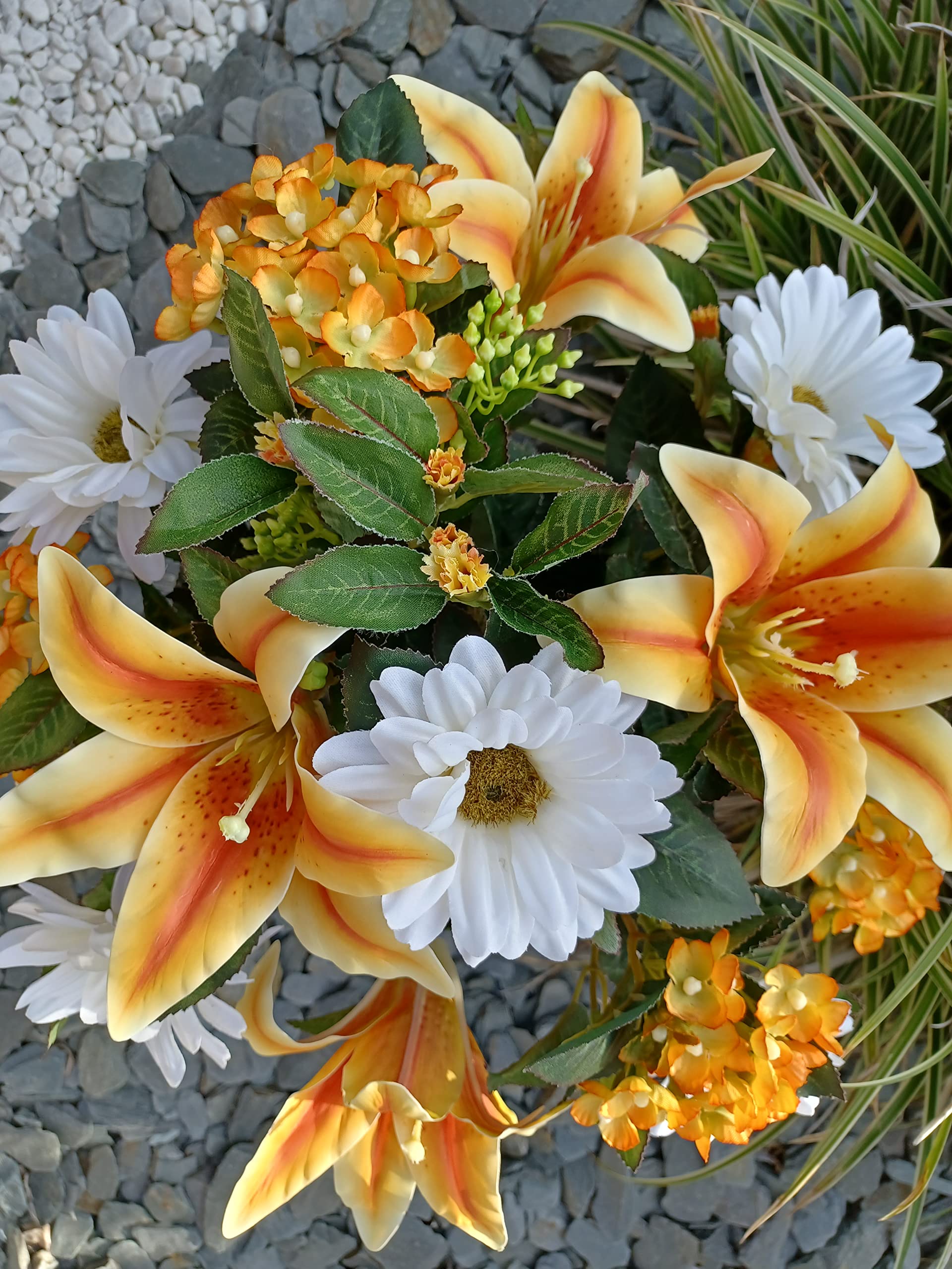 L'élégant pot en plastique noir présente un superbe arrangement conçu pour fleurir face à l'avant, créant une perception instantanée de la profondeur. Livré entièrement assemblé sans mousse florale ou vase nécessaire. La base lestée noire mate maintient la stabilité sur les terrains inégaux tout en se mélangeant discrètement avec les surfaces en granit. (Cette fleur artificielle en pot est livrée dans une forme compressée pour une expédition sûre, il suffit de les gonfler et de les coiffer en quelques minutes., ) Elles sont parfaites pour les propriétaires occupés et les sites commémoratifs éloignés Arrangements floraux en soie sans entretien : l'apparence permanente et impeccable ne nécessite aucun arrosage, coupe ou coûts de remplacement saisonniers. Solution de cadeau réfléchie Livré prêt avec un emballage discret, idéal pour envoyer des condoléances aux familles endeuillées. Au-delà de l'utilisation commémorative Transition fluide entre les espaces sacrés et les sanctuaires personnels avec cet arrangement de fleurs artificielles à double usage. Cimetière Fleurs Artificielles | Bouqueternel Ces fleurs en pierre tombale ont besoin de peu d'attention en dehors d'un léger dépoussiérage, il suffit de les essuyer avec un chiffon occasionnellement, ce qui peut garder une apparence fraîche en toutes saisons et ajouter une touche de dynamisme à votre vie. Il suffit de déballer et de positionner le pot en plastique lesté pour une sophistication immédiate. Les fleurs de lys en soie présentent des pétales légèrement recourbés avec des détails veinés naturels, complétant la dimensionnalité en couches de l'amas de dahlia. Fleurs Artificielles Obsèques Et Enterrements : Bouquet De Roses, Freesias Et Orchidées Remarque : - Vous pouvez nettoyer ces fleurs funéraires avec un chiffon doux et sec. Les sprays de fougère en plastique ajoutent un symbolisme de texture : leur qualité à feuilles persistantes reflète des souvenirs durables. Le design contenu évite les petites plaques commémoratives, ce qui le rend adapté pour les tombes compagnons ou les compositions florales bondées. Il est idéal pour la Saint-Valentin, la fête des mères, la fête des pères, Thanksgiving, Noël, le jour commémoratif pour exprimer le souvenir et le souvenir de vos proches disparus et les faire se sentir manqués et chéris lors des événements spéciaux Élevez votre espace avec des faux lys réalistes avec des détails mouchetés délicats, associés à des feuilles de palmier en soie pour un contraste de texture haut de gamme. Marque. Arborus · Type de produit végétal ou animal. dahlia · Couleur. rose · Matériau. Soie Plastique · Dimensions du produit. 16P x 16l x 36H centimètres · Usages... Chrysantheme Artificielle Plaques Funéraires Modernes Et Fleurs En Céramique Pour Cimetière Pot Fleurs Commémoratives 48cm Les mesures étant prises à la main, les tailles indiquées peuvent varier de 1 à 2 cm. Illustré dans des décors commémoratifs émotionnels et des scènes de maison confortables – il suffit de le placer et d'oublier. La palette rose et blanche s'harmonise à la fois avec les marqueurs de cimetière patinés et les intérieurs modernes de la maison – positionnez-le à côté des consoles d'entrée comme un rappel réconfortant ou un foyer de cheminée de flanc lors des rassemblements de souvenir.