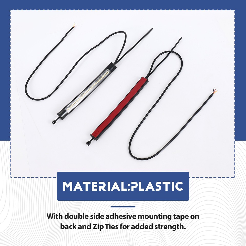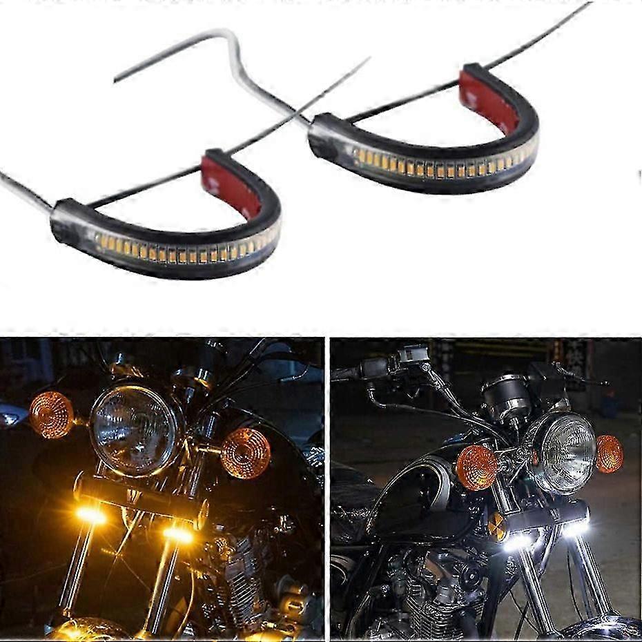 Clignotant Moto Led Jeenuuder Flexible Switchback Bicolore Blanc Et Moto LED Clignotants Moto LED Bande Lumineuse De Jour Led Drl 12v, Flexible Et Étanche, Clignotant Angle de vision de 120 degrés pour une visibilité plus large, plus sûre et plus lumineuse. Peut fonctionner comme clignotants, course, feux de plaque d... Angle de vision de 120 degrés pour une visibilité plus large, plus sûre et plus lumineuse. Peut fonctionner comme clignotants, course, feux de plaque d'immatriculation, etc. Imperméable et élégant. Note: réflexion de lumière et différents écrans peuvent causer la couleur de l'article dans un peu différente de la vraie chose. Venez avec 36pcs souper 3014-SMD Leds chaque bande, enveloppez vos fourches de moto. Utilisé comme feux de signalisation et arrière. fonctionne pour la plupart des motos telles que pour , pour , pour , pour , pour et de nombreuses . Peut fonctionner comme clignotants, course, feux de plaque d'immatriculation, etc. Imperméable et élégant. Avec de adhésif double face à l'arrière et attaches zippées pour plus de solidité