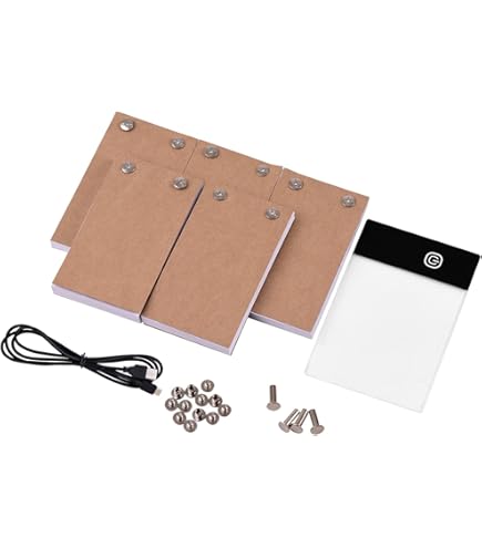 Mini Livre Entweg Kit De Flipbook,Flip Book Kit Avec Light Pad LED Light Box Tablette Lumineuse Calligraphie Kit de flip book 130 * 130mm avec mini Light Pad Led Lightbox Tablet Flip Book Kit con Light Pad LED Light Box Tablet 300 Hojas Papel de... Control Contrôle de luminosité en continu】: conception de commutateur à capteur tactile, il suffit de toucher le bouton pour régler la lumière LED jusqu'à ce que vous obteniez la luminosité souhaitée. La boîte à lumière avec fonction mémoire, vous n'avez pas besoin de régler à nouveau la lumière lorsque vous utilisez pour la prochaine fois. 【Alimenté par USB】: La carte de traçage est alimentée par un câble USB, facile accès à n'importe quel port USB comme un ordinateur, un ordinateur portable, un chargeur mobile, une banque alimentation, etc. En retournant la page avec votre pouce, vous pouvez voir effet dynamique, ce qui est très intéressant! Convient aux artistes, animateurs, designers, amateurs art, enfants, enfants, étudiants. Caractéristiques: Matériau du panneau: panneau acrylique Zone active: 9,9 * 8,5 cm / 3,9 * 3,3 pouces Interface entrée: Type-C LUX: 2000-2500 Taille de article: 13,0 * 8,5 * 0,4 cm / 5,1 * 3,3 * 0,2 pouces Poids de article: 40g / 1,4 oz Taille de emballage: 15,5 * 14,0 * 4,4 cm / 6,1 * 5,5 * 1,7 pouces Poids du paquet: 421g / 14,9 oz Liste de colisage: 1 * Copyboard 1 * câble USB 5 * Flip Books 1 * ensemble de vis de fixation 【LED écologique】: Lumière LED sans scintillement, luminosité uniforme et douce, sans danger pour les yeux, en particulier pendant de longues heures. Commencez votre propre dessin animé]: Le mini-tampon lumineux à LED est utilisé pour le dessin et le traçage, est livré avec 5 carnets (300 feuilles) et 2...