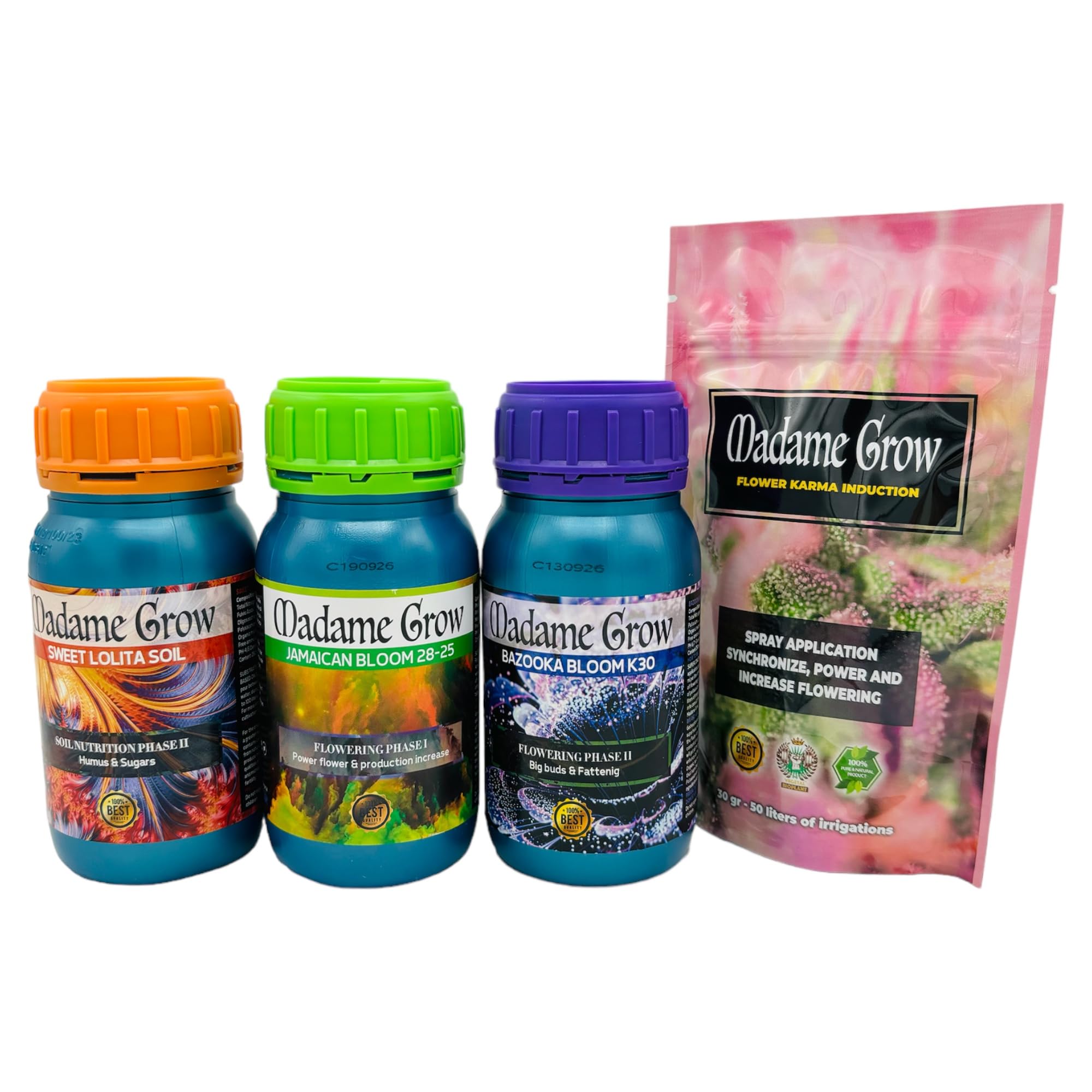 MADAME GROW - KIT PK ORGANIC LES MEILLEURS ENGRAIS DE MADAMDA CROISSENT POUR OBTENIR DES CULTURES ABONDANTES NATURELLEMENT SANS PRODUITS CHIMIQUES NI ADDITIFS Le molybdène bioencapsulé garantit que la plante, dans cette phase dans laquelle nous réduisons progressivement la quantité d'azote appliquée, catalyse la réduction de ce minéral aidant à améliorer la synthèse des acides aminés et des protéines, atteignant une performance beaucoup plus élevée dans la première phase de floraison en multipliant le nombre et la taille des fleurs. En règle générale, il est conseillé de toujours utiliser des produits avec une posologie progressive allant de moins en plus. La floraison, c'est quand votre plante arrête progressivement de pousser, produit un étirement dans les premières semaines et commence à produire des fleurs/bourgeons. Phase de floraison I, floraison puissante et augmentation de la production : lorsque votre plante a besoin de plus de phosphore et de potassium pour améliorer et augmenter la floraison (Jamaican Bloom 28-25) Bud&Flavor, comme indiqué, c'est quand les bourgeons commencent à grossir, et sûrement que la plante a cessé de croître, consacrant toute son énergie à la production et à l'engraissement des bourgeons. KIT PK ORGANIC BY MADAME GROW - STRESS NPK, NUTRITION ET FLORAICON LACALVA STRESS TREATMENT LACALVA STRESS, est une recette équilibrée de NPK à haute teneur en acides aminés, de manganèse bioencapsulé et d'ingrédients secrets, elle est recommandée pour les périodes de stress et de demande maximale de votre plante thérapeutique ou de vos plantes de chanvre, les rendant plus fortes et les protégeant de tout besoin ou attaque. Commencez avec une faible dose Augmentez progressivement chaque semaine, jusqu'à la dose maximale Diminuez progressivement cette posologie jusqu'à ce que vous cessiez d'utiliser le produit. Cette entreprise est spécialisée dans la conception et la fabrication d'engrais 100% organiques et naturels, destinés uniquement et exclusivement pour des plantations à des fins thérapeutiques, et mettant à la disposition de l'utilisateur à domicile des développements modernes en nutriments naturels. MADAME GROW est la marque spécifique d'engrais pour les plantes thérapeutiques 100% organiques ou d'engrais de VEGETAL BIOPLANT S., L. Son utilisation est recommandée dans les changements de phase, ainsi que lorsqu'il y a un manque de nutriments ou que la plante subit une attaque, spécifiquement conçue par MADAME GROW pour les moments de besoin maximum, elle fournit tous les macro et micro éléments nécessaires pour surmonter les moments de stress . ✅🌺 Récoltes abondantes : obtenez des récoltes riches, saines et abondantes, avec des fleurs et des bourgeons explosifs, le tout de manière naturelle, sans produits chimiques ni additifs. KIT D'ENGRAIS POUR CULTURES | Hydroponie - Intérieur - Extérieur Les excès peuvent apparaître rapidement, attention à ne pas en faire trop! BAZOOKA BLOOM K30 Obtenez des big bud XXL explosives, lourdes, aromatiques et au meilleur goût avec cette recette super concentrée de bioencapsulage de potassium K30 acidifié et d'ingrédients secrets développés par MADAME GROW, pour l'engraissement des bourgeons. Dans la continuité de la floraison, et au sein de cet état, nous détaillons les nutriments nécessaires à ce moment important de votre plante thérapeutique : Phase de floraison II, gros bourgeons et engraissement : c'est lorsque votre plante a besoin de plus de potassium ainsi que d'autres nutriments pour produire plus de résine et donc des bourgeons plus lourds, également en fonction des produits que vous utilisez, vous pouvez en profiter pour améliorer la saveur de votre plantes thérapeutiques ou chanvre (BAZOOKA BLOOM K30). PRODUCTIVIT JAMAICAN BLOOM stimule et augmente de mani re surdimensionn e la floraison de votre plante, am liorant ainsi les r sultats. GROWTH ACCELERATOR Le nutriment TOP de MADAME GROW, 2 en 1, Racine & Croissance, r sultats garantis, 100% bio. NATURELS Produits 100% organiques et naturels, sans produits chimiques ni additifs La fin du cycle, c'est lorsque vous arrêtez d'apporter des nutriments à vos plantes pour leur fournir une eau au PH équilibré, il est recommandé qu'il soit deux semaines avant la récolte pour éliminer les sels et les minéraux du sol. Il stimule et augmente la floraison, en favorisant la formation des bourgeons. Celles-ci sont décrites dans une série d'articles sur la nutrition des plantes d'intérieur et d'extérieur. Engrais Aquarium Engrais Naturels Protection, Floraison Et Engraissement - Madame Grow Engrais Biologique Croissance Floraison Madame Grow - Kit Palawan - Engrais Naturels - Stimule la Floraison... Ces programmes nutritionnels sont indicatifs, ils devront être adaptés à chaque plante, car chaque individu a un appétit et une assimilation différents des nutriments. Il est appliqué dans la dernière étape de la floraison, au début de l'engraissement de votre plante thérapeutique ou de vos plants de chanvre, la phase Bourgeon & Saveur, donnant avec lui l'impulsion finale dont ils ont besoin pour obtenir une récolte spectaculaire. La forte concentration d'acides aminés permet à notre plante d'atteindre la fin du cycle avec toute la vigueur et la protection nécessaires pour obtenir une récolte réussie. CULTIVEZ AVEC MADAME CULTIVEZ DANS TOUS TYPES DE SUBSTRATS SOL / HYDRO / COCO / AÉRIEN - RENDEMENTS ABONDANTS COMBIEN DE PHASES LE CYCLE DE MES PLANTES COMPORTE-T-IL ? CHEZ MADAME GROW, NOUS VOUS FACILITONS LES CHOSES, NOUS DÉTAILLONS ET SIMPLIFIONS PARFAITEMENT LES PHASES DE DÉVELOPPEMENT DE VOTRE PLANTE, DE CETTE FAÇON : Racine/Croissance, de la semaine 0 à la semaine 4 environ, nous appelons les semaines 3-4 de pré-floraison, selon la plante, lorsque vous voyez les premiers signes qu'elle va commencer, lorsque les premiers organes, boutons ou bouquets sont visibles fleur