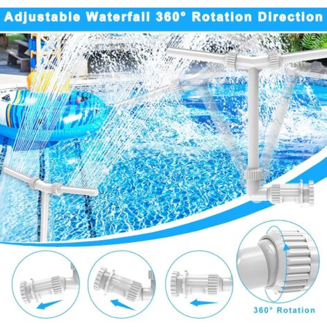 Fontaine de piscine - WMT SERIES - FYREFLY™ JET - Crystal Fountains Réglage à 360 °: Le Hors Sol en cascade de piscine est équipé de tuyaux réglables à 360 ° et de vannes latérales, ce qui optimise la pression et la hauteur de l'eau par un contrôle précis de la direction et de la hauteur du jet Fontaine Piscine Double Jet Fontaine De Piscine, Accessoires De Piscine à Double souterraine Fontaine De Piscine Reglable 2 En 1 Pour Piscine Hors Sol Arrosage De Jardin Exterieur 87228587 Jet Pour Piscine Hors Sol Description : Notre conception à double jet offre un double plaisir et une double excitation dans votre piscine, avec deux cascades qui peuvent éclabousser dans les deux sens pour votre plus grand plaisir. Détendez-vous refroidissement: améliorez l'expérience de la piscine à travers nos fontaines, ce qui crée une grande cascade élevée qui refroidit l'eau de 6 à 10 degrés. Conçue comme accessoires de piscine hors sol et accessoires de piscine pour piscines creusées, notre fontaine se connecte parfaitement aux jets creusés de 3,8 cm ou aux raccords hors sol de 3,2 cm/3,8 cm. Fonctionne parfaitement avec Intex, Bestway, Coleman, et plus encore - aucun adaptateur ou outil n'est nécessaire Il suffit de le... Spécifications : Raccords compatibles : raccords filetés de 1,5 pouce et 2,2 pouces Contenu de l'emballage : Fontaine de piscine *1 Adaptateur *1 Mode d'emploi en anglais *1 Non seulement il améliore l'atmosphère avec un son apaisant, mais il offre également un environnement rafraîchissant et relaxant Natation Fountaine à double fontaine: Idéal pour les piscines et les jardins, parfait pour une utilisation estivale et ajouter du décor à votre étang. Facile à installer: éteignez la pompe de piscine, dévissez et retirez la buse, connectez la fontaine, allumez la pompe, réglez l'écoulement de l'eau et de la direction vers votre goût.