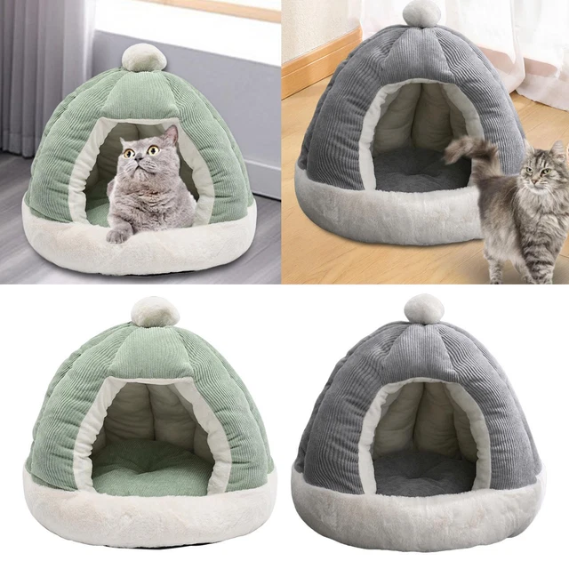 Nid Couchage Animaux Fermé Lit For Chat Grotte For Chat, Lit For Animal Domestique For Chats Et Chiens, Lit Niche For Chat, Niche For Chat, Panier For Chat Avec Coussin Intérieur Amovible, Doux Et Lavable (Color Lit Grotte Chat Sac de couchage chaud d'hiver pour chat, lits amovibles pour chat, sommeil profond, lit pour chien, maison, nid pour chat, coussin avec oreiller, fournitures pour chat La cachette douce pour chatons offre un espace douillet et fermé pour que votre animal de compagnie puisse se reposer et dormir confortablement. Conçue comme... La conception lavable assure un nettoyage facile, tandis que la fonction amovible permet un entretien pratique. Caractéristiques:Couleurs : Vert, Beige, violetTailles : Small (chats jusqu'à 4 kg, chiens jusqu'à 2,5 kg), Medium (chats jusqu'à 7,5 kg, chiens jusqu'à 5 kg)Matériau : peluche courte, coton PP. Conception fermée et confortable : le lit pour chat fermé combine un tissu en peluche à poils courts de haute qualité avec un rembourrage en coton PP résistant, offrant à la fois une excellente rétention thermique et une sensation apaisante, adapté pour garder les chats au chaud et satisfaits pendant les soirées de printemps ou d'automne à la maison. Description du produit Les lits doux pour chaton d'intérieur offrent un nid de couchage confortable et fermé pour les chatons, les chiots et les petits animaux, offrant chaleur et confort dans n'importe quel environnement intérieur, comme le salon ou le jardin. Conception hygiénique et commodité : doté d'une entrée fermable avec des boutons sécurisés, ce lit pour chien assure une zone de repos toujours hygiénique tout en permettant un retrait rapide et facile pour le nettoyage, convenant aux maisons où les animaux aiment jouer à l'intérieur et à l'extérieur. Refuge pour animaux de compagnie bien pensé : Cat Cave House offre un sanctuaire privé où les animaux de compagnie peuvent se détendre, offrant des soins méticuleux grâce à sa conception tout en en faisant le cadeau réconfortant parfait pour les anniversaires, les vacances ou simplement pour montrer de l'affection à vos compagnons bien-aimés. Retraite parfaite pour les chats solitaires : ce lit grotte pour chat offre une aire de repos isolée avec une structure fermée et apaisante, adaptée aux chats qui aiment les espaces privés et ont besoin d'un endroit calme pour se détendre et dormir profondément tout au long de la journée. Conception hygiénique et commodité : doté d'une entrée fermable avec des boutons sécurisés, ce lit pour chien assure une zone de repos toujours hygiénique tout...