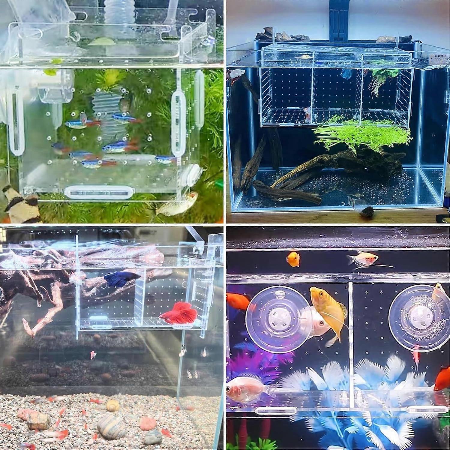 Réservoir De Frai Isolation Poissons Accessoires Aquarium Breeder Box For Fish Tank Réservoir De Frai Pour Bac De Frai Acrylique Transparent Boîte D'élevage de Poissons Aquarium Breeder Box en Acrylique Pondoir Matériau de visibilité optimale : fabriqué en acrylique à haute transmission de la lumière pour fournir une vue claire de l'activité des poissons... Matériau de haute qualité : Le boîte d'élevage en acrylique est fabriqué en acrylique transparent de haute qualité. Il est transparent, robuste et durable. Indispensable pour le frai : breeding box aquarium dispose de deux chambres d'isolation pour isoler et protéger les petits poissons, les poissons gestants et les nouveau-nés. Matériau : Acrylique Dimensions : 20 x 10 x 10 cm Couleur : Transparent HD Modèle : Type crochet Conseils : 1., Les mesures étant prises à la main, une marge d’erreur de 1 à 5 mm est possible., 2., En raison de nombreux facteurs, tels que la luminosité de votre écran, la couleur réelle de l’article peut être légèrement différente de celle affichée sur le site web. Écloserie : Le frai d'aquarium empêche vos poissons d'attaquer les alevins nouvellement éclos. Il est également idéal pour isoler les poissons malades et faibles. Il protège également les poissons malades, les petits poissons ou les crevettes des attaques agressives HUJ Aquarium cave Céramique Décoration Frai Reproduction Paysage...