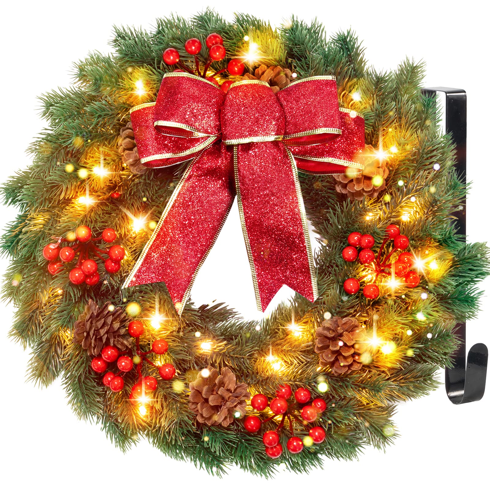 Perfect for anyone who loves to decorate with style and celebrate in light. How to make a large, lighted outdoor wreath Déco Noël Porte Cheminée Large Christmas Wreath For Front Door With Pine Ne... – Vicedeal Couronne Avec Nœud Festif Elegant Festive Design:Bring the spirit of the season into your home with this beautifully crafted Christmas wreath. Its lightweight yet sturdy construction makes it easy to hang on doors, walls, or above the mantel—no hassle, just pure festive beauty. Wreath with Red Berries and Bow, Xmas Wreath for Home Porch Fireplace Window Holiday Wall Decor. powerking Christmas Wreath for Front Door, 40 cm Large... Adorned with rich pine needles and bright red berries, it creates an enchanting holiday centerpiece that adds a touch of classic Christmas charm to any room. It can be hung on walls, fireplaces, windows, or placed above the entrance or on a mantel. Ideal Christmas Gift:This Christmas wreath with lights is a wonderful Christmas gift for friends, families. It can also serve as a centerpiece on a tabletop, offering a warm welcome to family and friends.