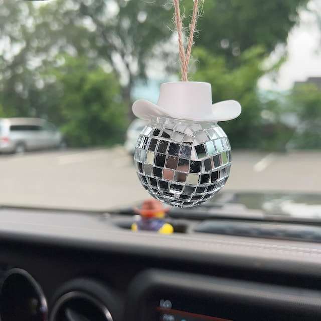Ajustez-le à la longueur qui s'adapte le mieux à vos habitudes de conduite afin de ne pas déranger ou toucher le pare-brise, sans endommager votre pare-brise avant et bloquer votre vue. Ce que vous obtenez 1 pièce de miroir de voiture à boule disco. 【Disco Ball avec chapeau de cowboy】 Composé d'un chapeau de cowboy et d'une boule à facettes disco, lorsque le soleil frappe l'ornement de voiture Disco Ball, il scintillera et la lumière se reflétera si magnifiquement sans entrer dans vos yeux. Lorsque la lumière du soleil frappe l'accessoire de boule de verre étincelante, elle scintille et la lumière se reflète si joliment sans pénétrer dans les yeux. Fond de luxe blanc avec cadre de cercle arc-en-ciel avec décoration de boule et élément d'effet Poids du produit : environ 13 g. Hat and Disco Ball Composition. Fond de luxe blanc avec cadre de cercle arc-en-ciel avec décoration de boule et élément d'effet... 【Facile à manipuler】 N'endommagera pas le pare-brise avant et ne bloquera pas votre vue, ajustez la boule disco de voiture à la longueur qui convient le mieux à vos habitudes de conduite afin de ne pas déranger ou toucher le pare-brise. Ornements de miroir de voiture à boule disco | Charme de voiture de chapeau de cowboy | Bling Car Disco Ball, Décoration de miroir de voiture, accessoires intérieurs de voiture Caractéristiques : Fabriquée en boule à facettes en verre + abs, la boule est en mousse à l'intérieur, pas facile à déformer ou à la finition exquise, polissage exquis, sans odeur, durable. Veuillez ne pas frotter la pression sur le chapeau, sinon il risque de le faire tomber. Accessoire Auto Brillant Bekecidi Lot De 3 Pendentifs En Forme De Boule Disco Miroir, Chapeau De Cowboy De 4 Cm, Accessoires à Suspendre Pour Voiture, Décorations De Fête à La Maison (style 1 Ornement Miroir Voiture Chapeau Cow Boy Western Pour Fille – Chapeau Cowboy 【 Pendentif de voiture】 Convient aux hommes et aux femmes, un bon choix pour le rétroviseur de voiture, la boule disco avec chapeau de voiture peut être utilisée pour les accessoires de voiture, la décoration de la maison et de fête.