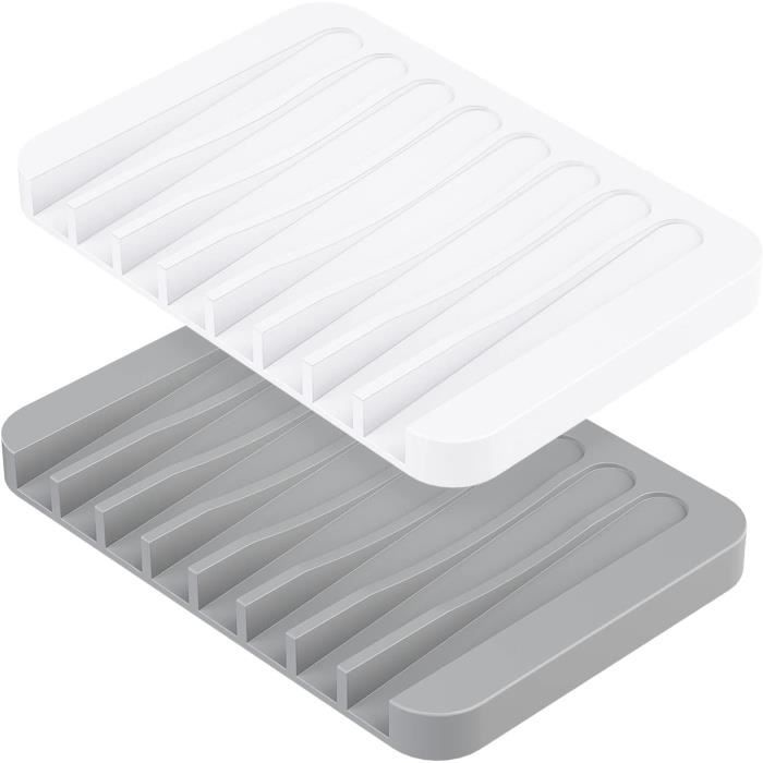 Lot de 3 porte-savons auto-drainants en silicone en forme de cascade pour salle de bain, prolonge la durée de vie du savon, garde au sec, propre et facile à nettoyer (noir, blanc, gris Convient pour différentes tailles de savon, il est parfait pour le savon corporel dans le bain et le savon pour le lavage des mains dans la cuisine. Support Savon Drainage Rapide Lot De 2 Porte-savons En Silicone Auto-drainants – Porte-savon En Forme De Cascade Pour Salle De Bain, Garde Les Barres De Savon Sèches Et Propres, Transparent Lot 2 Porte-savons Vert Clair Avec une jolie couleur macaron (vert clair comme sur la photo), il apporte une ambiance douce à votre salle de bain ou cuisine. Le design incliné permet à l'eau de s'écouler direct dans l'évier ou la douche - fini les flaques ! Le fond a une grille épaisse pour éviter de glisser Porte-savon auto-drainant pour douche, porte-savon en silicone pour évier de cuisine, lavabo de... Fiable et doux : le porte-savon de douche est fabriqué en silicone de qualité, confortable au toucher et sûr à utiliser, pas facile à casser ou à corroder, réutilisable et durable, et le plateau en silicone peut vous apporter une belle expérience Un ajout pratique et mignon à votre routine quotidienne, rend le savon – utilisation meilleure expérience et votre espace plus organisé. Large gamme d'applications : le porte-savon de douche avec design de drainage peut être utilisé dans la salle de douche, la salle de bain, la baignoire, le comptoir, la cuisine, etc. Fabriqué en silicone souple et durable, antidérapant, anti-rayures et super facile à nettoyer. Quantité suffisante : le colis comprend assez de porte-savon de couleurs simples, et la bonne quantité de porte-savon avec des couleurs élégantes peut répondre à vos besoins d'utilisation et de remplacement dans la vie quotidienne Améliorez votre rangement de savon avec notre lot de 2 porte-savons en silicone.