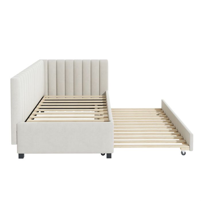CONTENU DE LA LIVRAISON : cadre de lit complet en 3 colis (49 kg), matériel de montage inclus, matelas non inclus dans la livraison Pour Salon Chambre Ami ESTINK Canapé-lit En Forme De L Gris Clair 279x140x70 Cm Velours 85433 Canapé Lit 140 X 200 Cet élégant lit rembourré en forme de L allie style et fonctionnalité dans un design bien pensé. Des lumières LED entourent le lit, créant une ambiance relaxante. Sept couleurs sont disponibles. Un port USB intégré vous permet de recharger votre téléphone au lit, sans avoir à chercher une prise. Ce canapé-lit est équipé d'un lit gigogne de 90 x 190 cm, optimisant l'espace et accueillant des amis ou des invités La construction robuste avec sommier à lattes supporte jusqu'à 150 kg et convient aux matelas de 8 à 12 cm de hauteur. Avec des dimensions totales de 205 x 148 x 90 cm, le lit s'adapte parfaitement dans les coins ou le long des murs. Lit rembourré en L, canapé-lit 140x200 cm avec dossier à fleurs et lit gigogne en velours rose · Plus produit : Haute intensité · Nombre et type de rangements... Le lit gigogne se retire facilement et crée un espace de couchage supplémentaire. Avec une surface de couchage de 140 x 200 cm et un lit gigogne pratique, il offre des possibilités de couchage flexibles pour les invités ou la famille. Le rembourrage beige s'harmonise avec différents styles d'intérieur et fait de ce lit une pièce d'ameublement polyvalente pour le salon, la chambre d'amis ou les petits appartements. Canapé-lit rembourré 140 x 200 cm, avec support hydraulique, avec Le dossier ondulé distinctif beige confère au meuble une touche esthétique particulière. Design : lit rembourré en forme de L avec élégant dossier floral en tissu de velours beige de haute qualité, idéal pour les coins et le placement mural