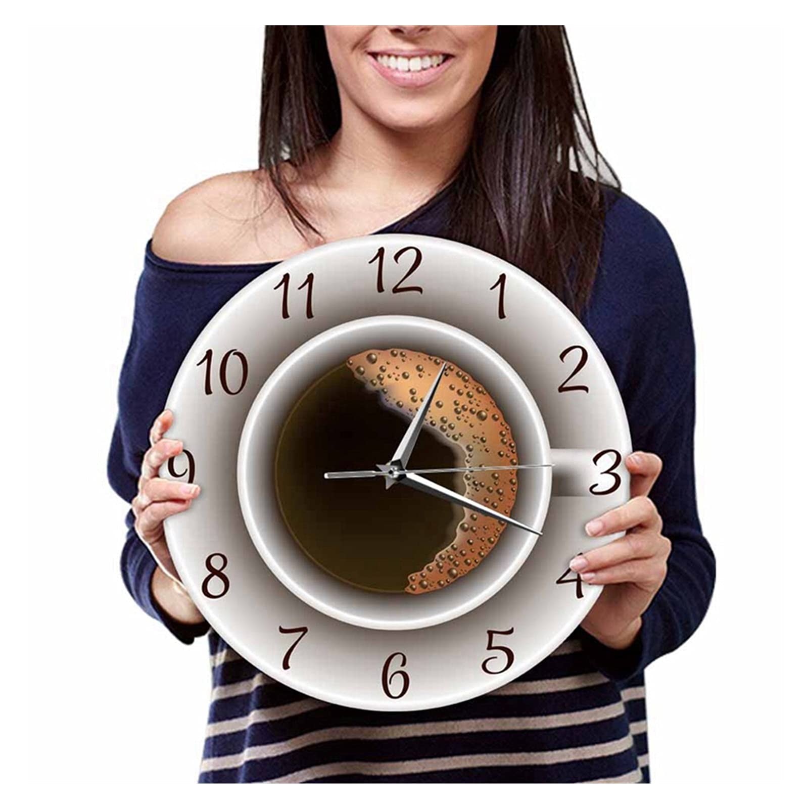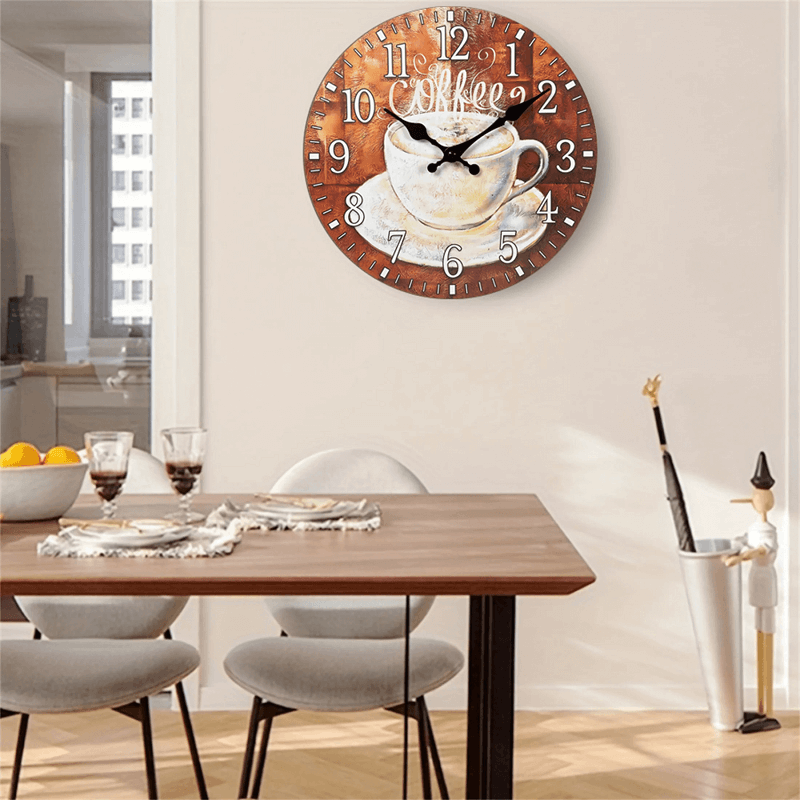 Fonction décorative : à placer dans les salons, cuisines, salles à manger ou chambres pour rehausser l'esthétique de votre maison. Horloge Design Tasse à Café 30cm Silencieuse Salon Horloge Murale En Forme De Tasse à Café | Horloge à Quartz Silencieuse Décoration Murale Cuisine Salon * Excellent : cette horloge unique est un merveilleux cadeau pour les amis et la famille pour diverses occasions telles que les pendaisons de crémaillère, les anniversaires, Noël, les mariages et les fêtes de vacances. Horloge Murale avec Chiffres Géants Caractéristiques : * Nom de la pièce : horloge murale. Contenu de l'emballage : Une horloge murale HORLOGE MURALE NOIRE design moderne avec mouvement de balayage... Les grands chiffres sur l'horloge permettent de la lire. * Caractéristiques : l'horloge dispose d'aiguilles des secondes silencieuses, fournissant un mécanisme sans tic-tac pour un environnement paisible essentiel pour le travail, le sommeil, l'étude et la lecture. Horloge sur le thème du café chic : cette horloge murale décorative présente un charmant design de tasse à café qui ajoute du style à n'importe quelle pièce et suscite la conversation entre les invités. Pendules murales,Horloge Murale de théière Moderne, décoration de Forme de Tasse de café de *Matériau : fabriquée en panneau de densité, cette horloge murale est durable. Fonctionnement silencieux : profitez de la tranquillité avec le mécanisme sans tic-tac qui favorise la concentration pendant le travail ou l'étude sans distractions.