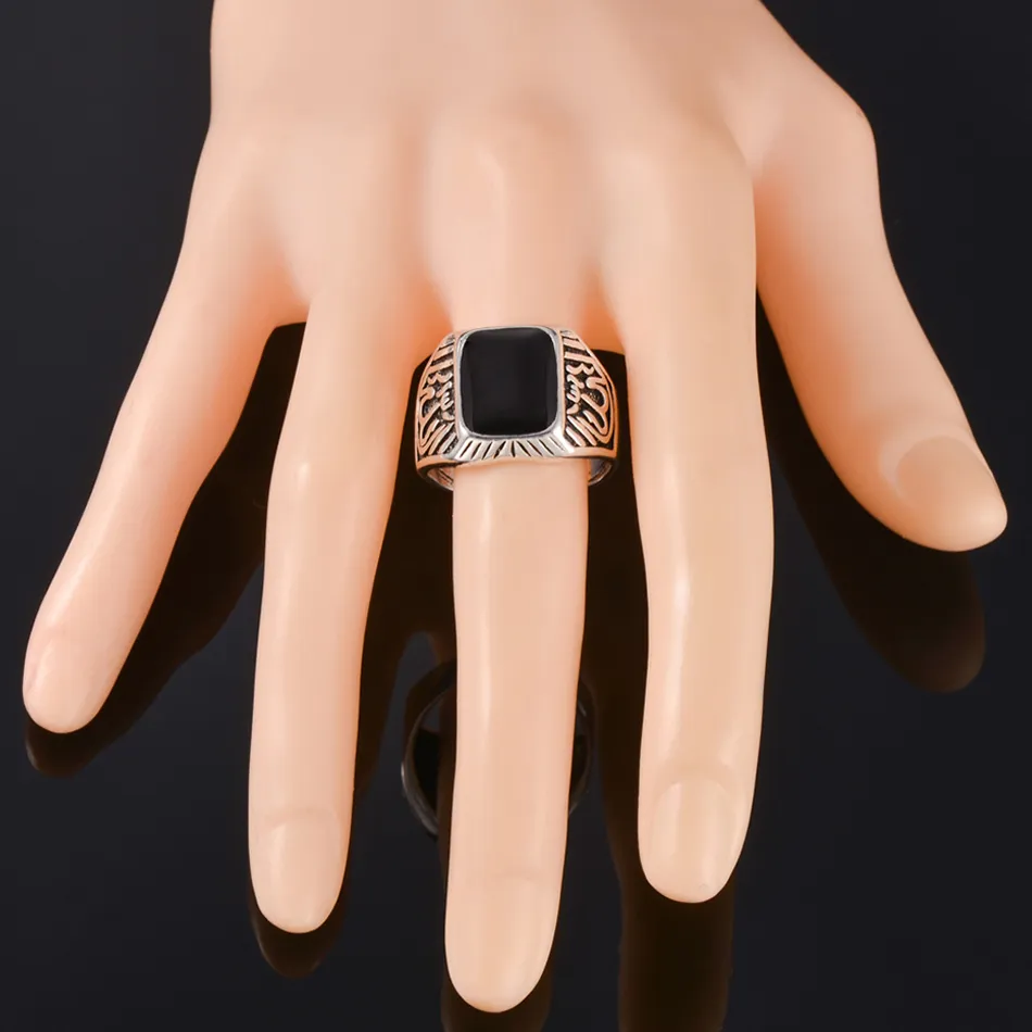 Bracelet homme islam Allah arabe en acier chirurgical et silicone noir... Cette chevalière mettra parfaitement en valeur votre main. Chevalière originale pour homme en acier avec plateau ovale sur fond noir avec texte musulman! Chevalière Acier Plateau Noir Formes De Chevalières : Le Guide De La Maison Bague Homme Inscription Arabe Texte musulman apparaissant au centre dans toute sa splendeur. La bague chevalière pour homme est un accessoire intemporel qui apporte une touche d'élégance et de caractère à votre style. Souvent ornée d'une pierre précieuse ou d'un motif gravé, elle se porte traditionnellement à l'auriculaire gauche Bague en acier inoxydable qui a été blanchi pour lui donner des éclats argentés. Bague arabe musulmane gravure du Coran en acier inoxydable | Bijoux Steel